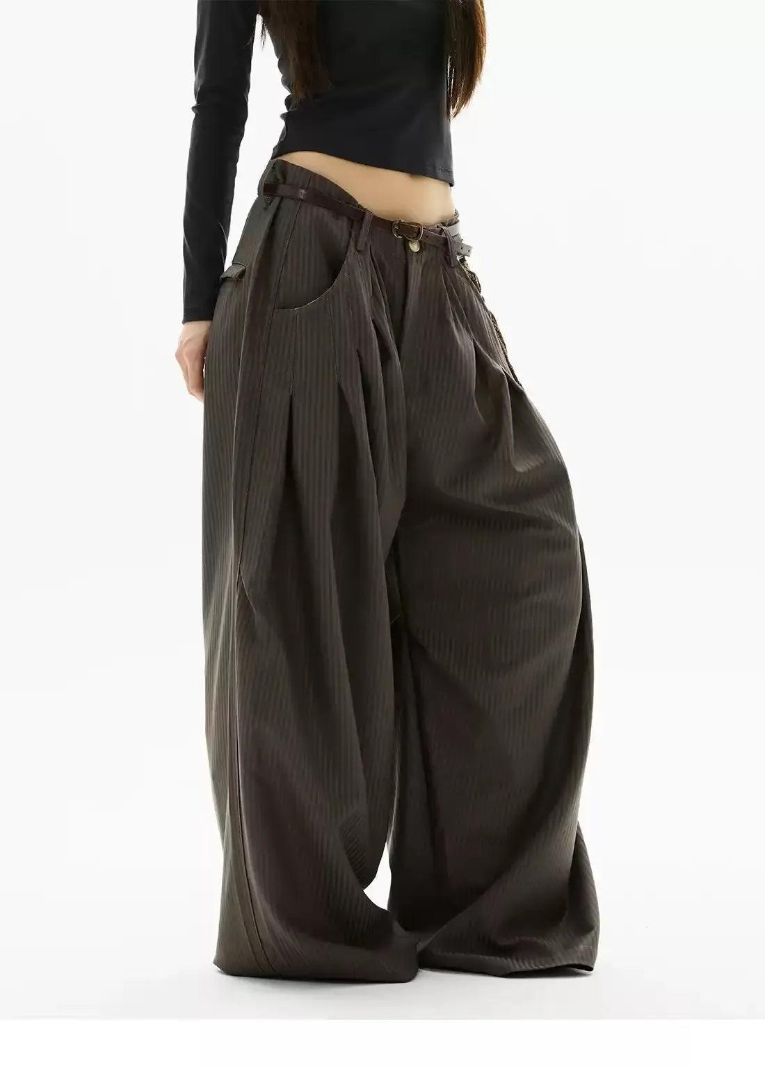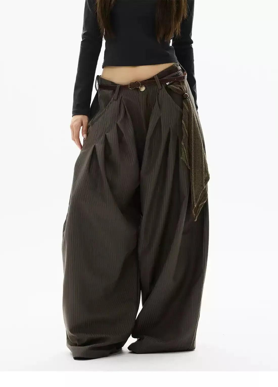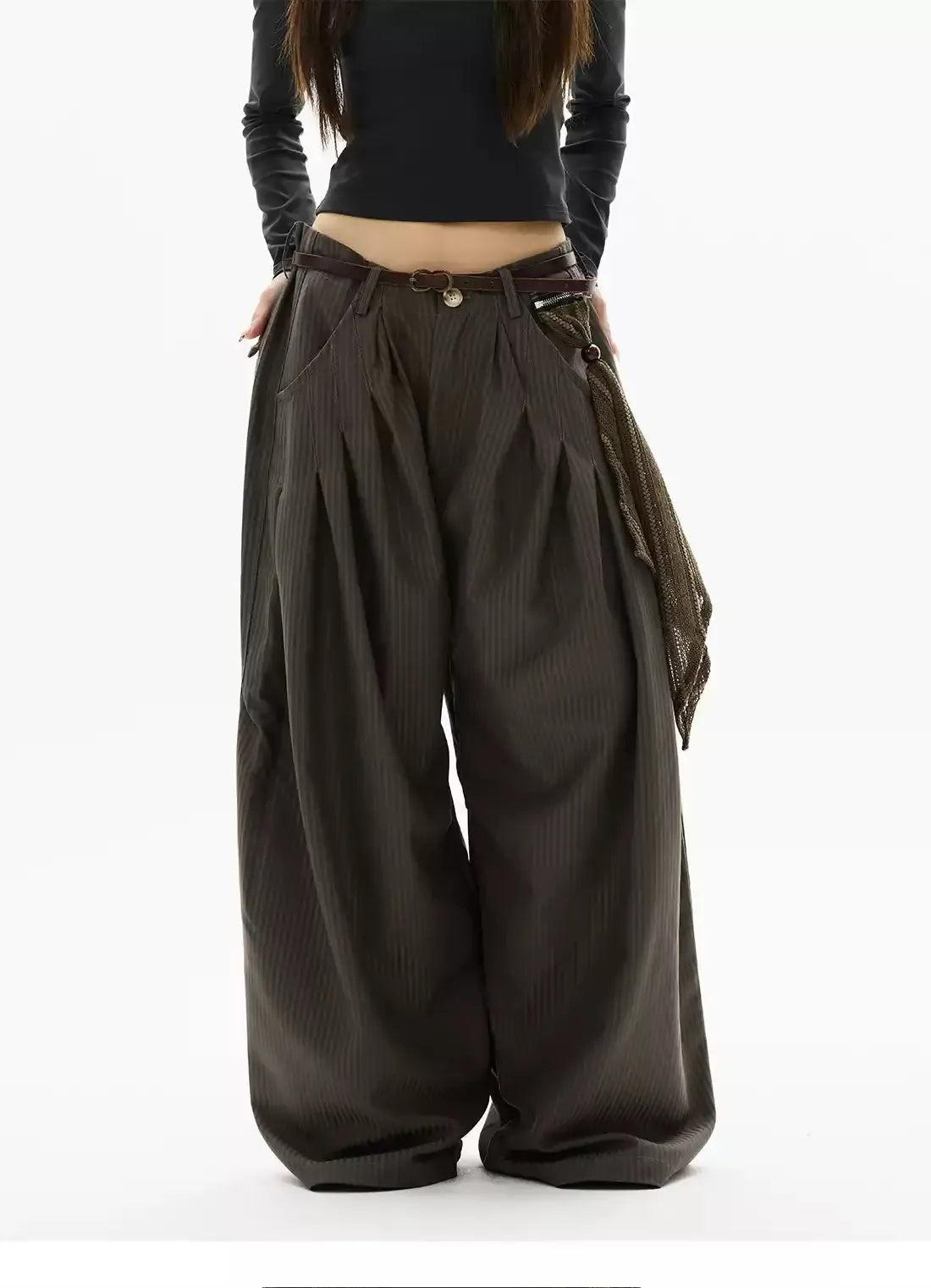 Oversized Fit Pleated Striped Pants