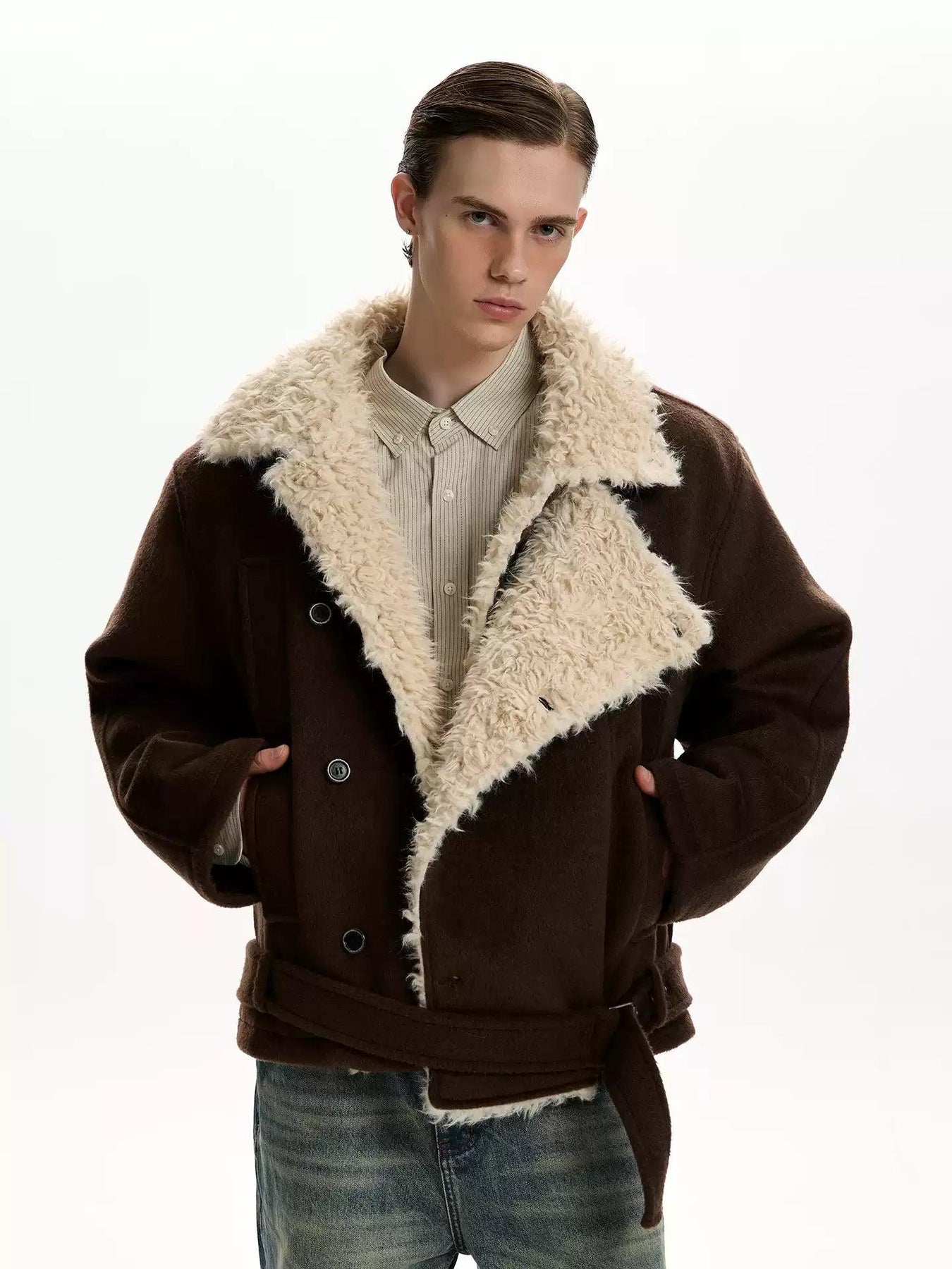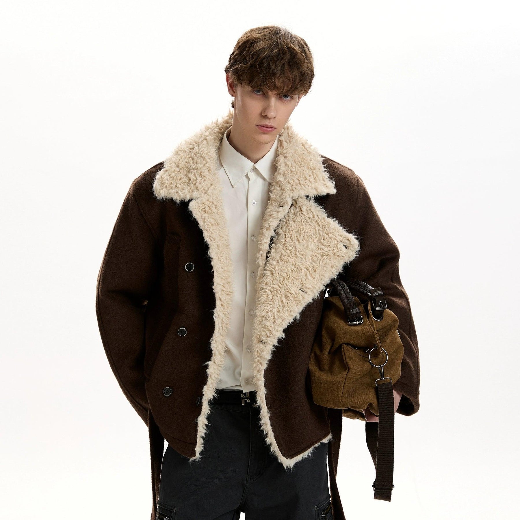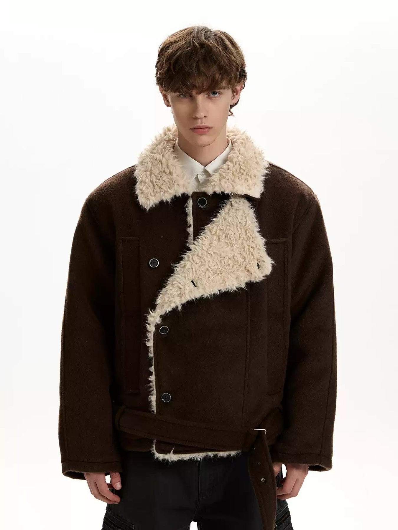 Shearling Lapel Strapped Jacket