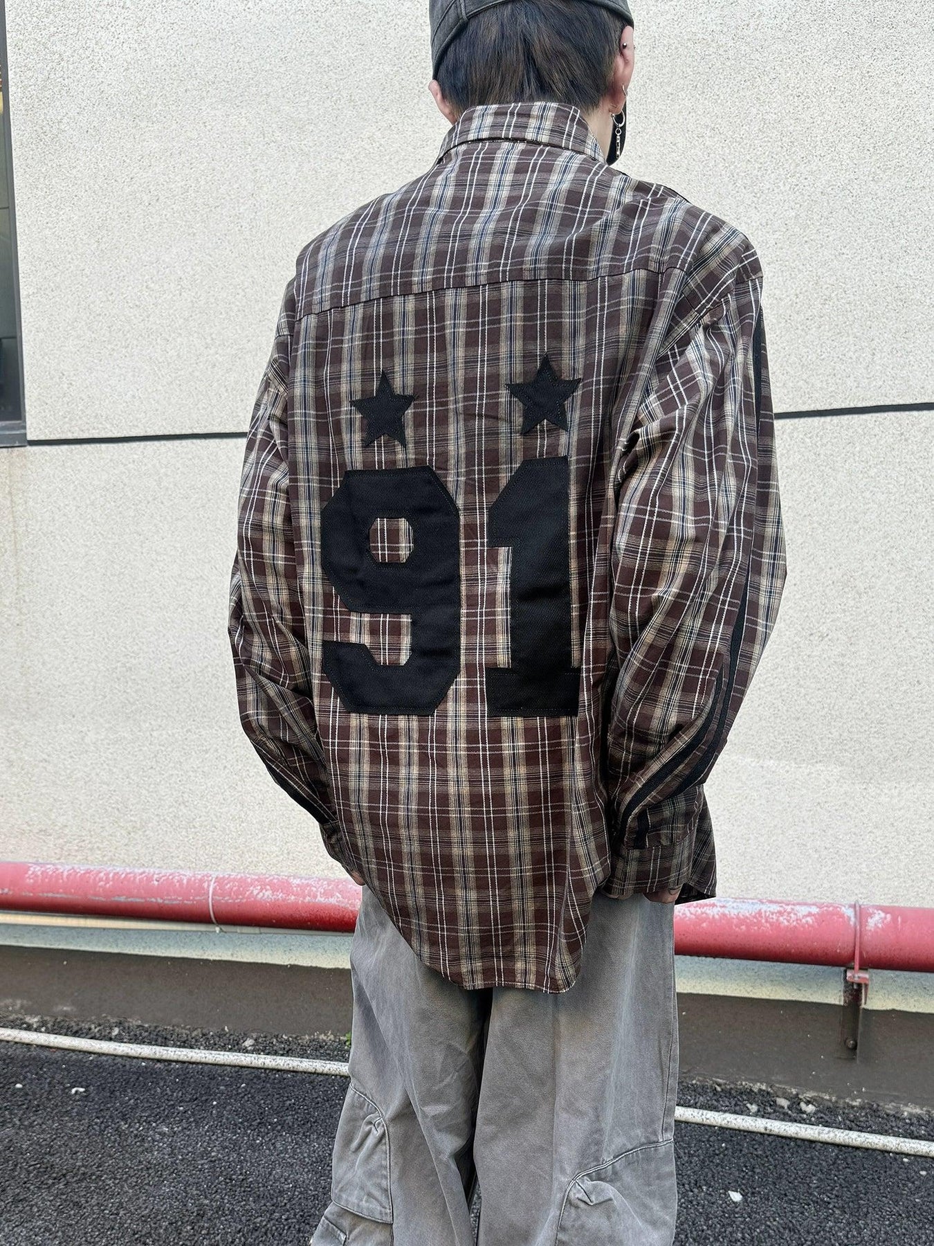 Number Patched Plaid Shirt