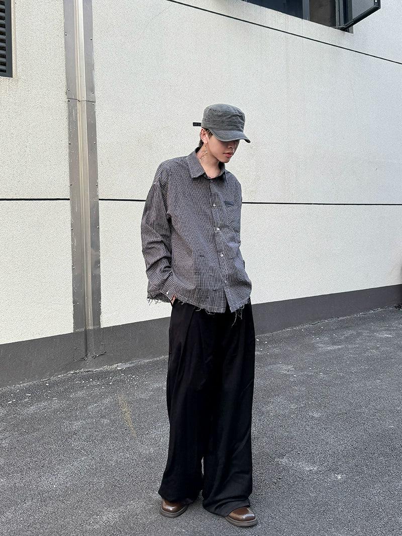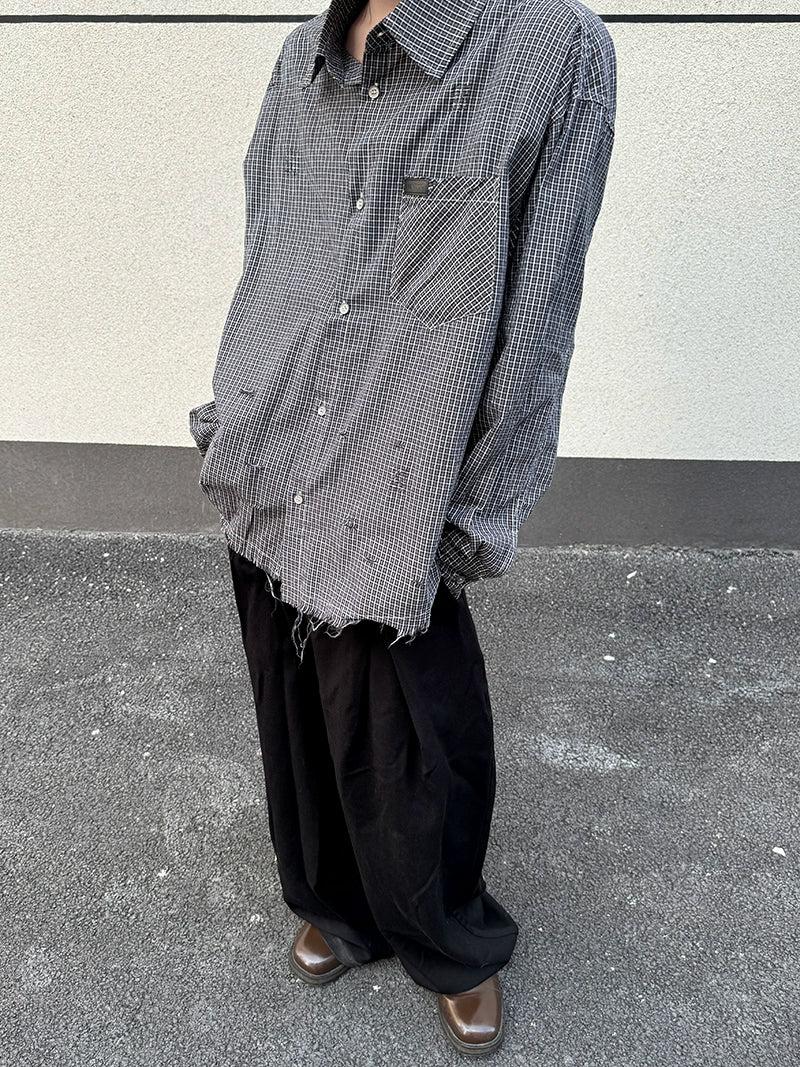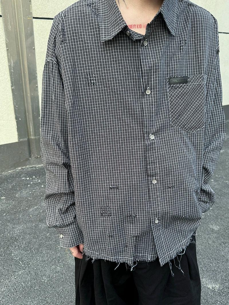 Raw Edge Plaid Buttoned Shirt