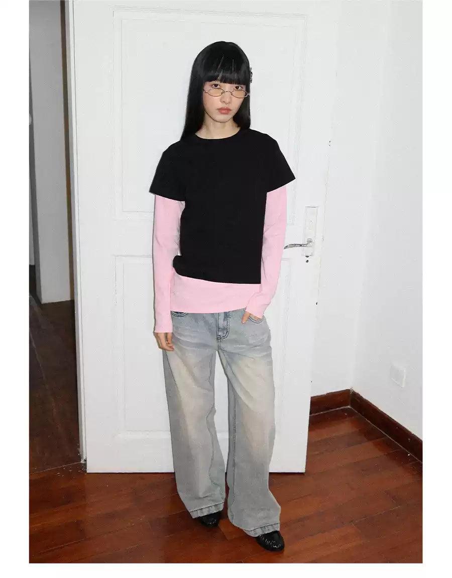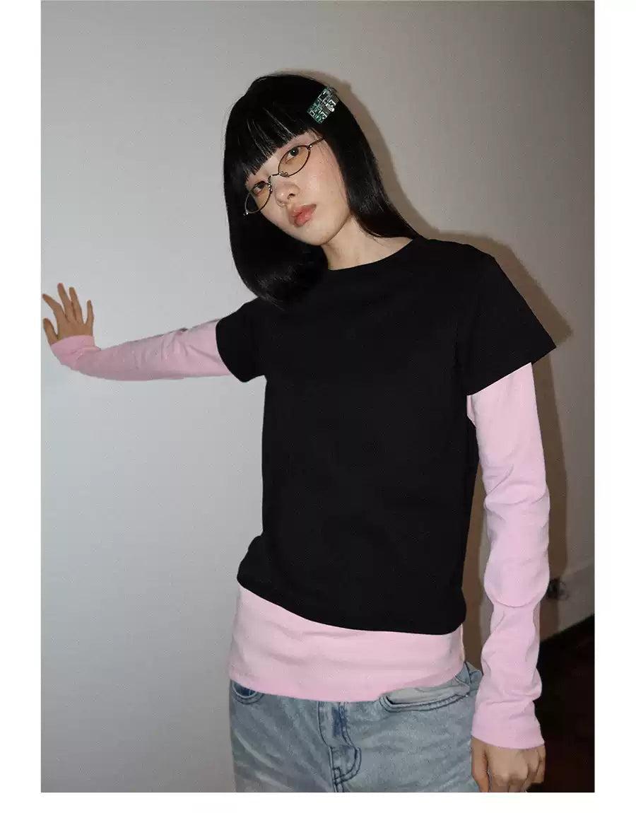 Layered Solid Color Long Sleeve T-Shirt