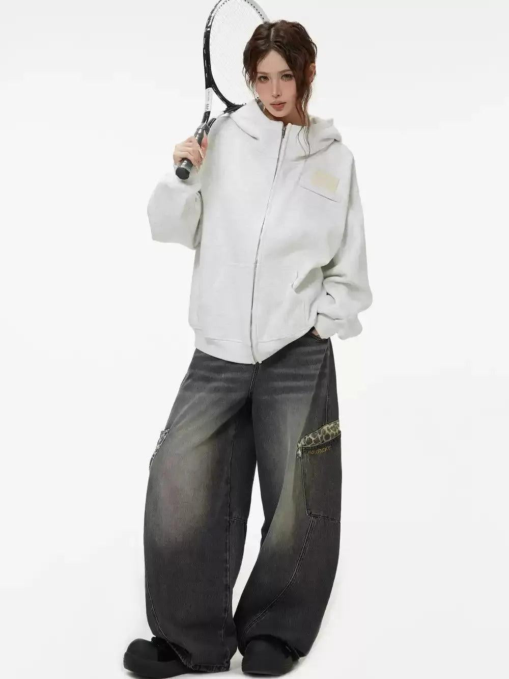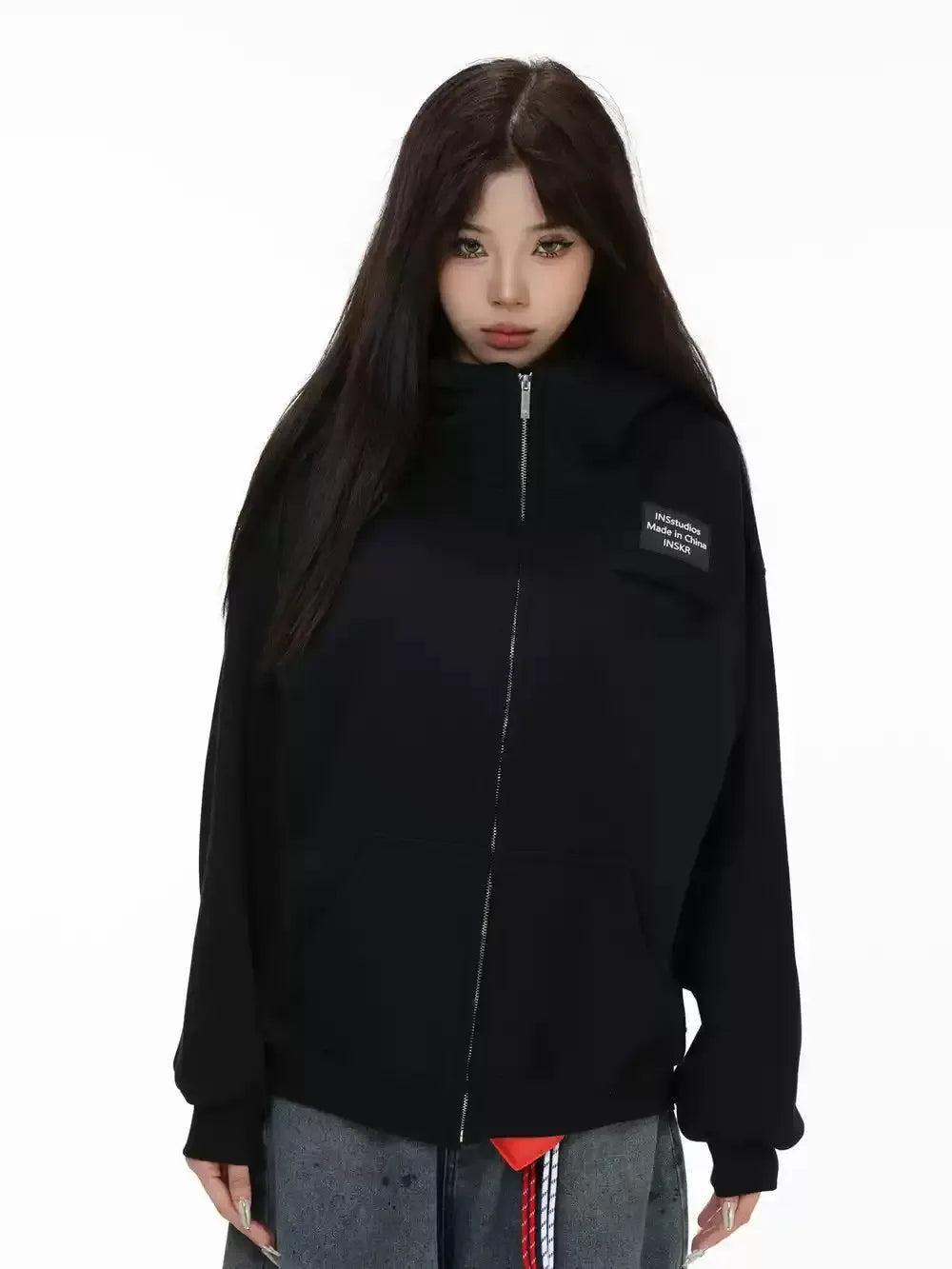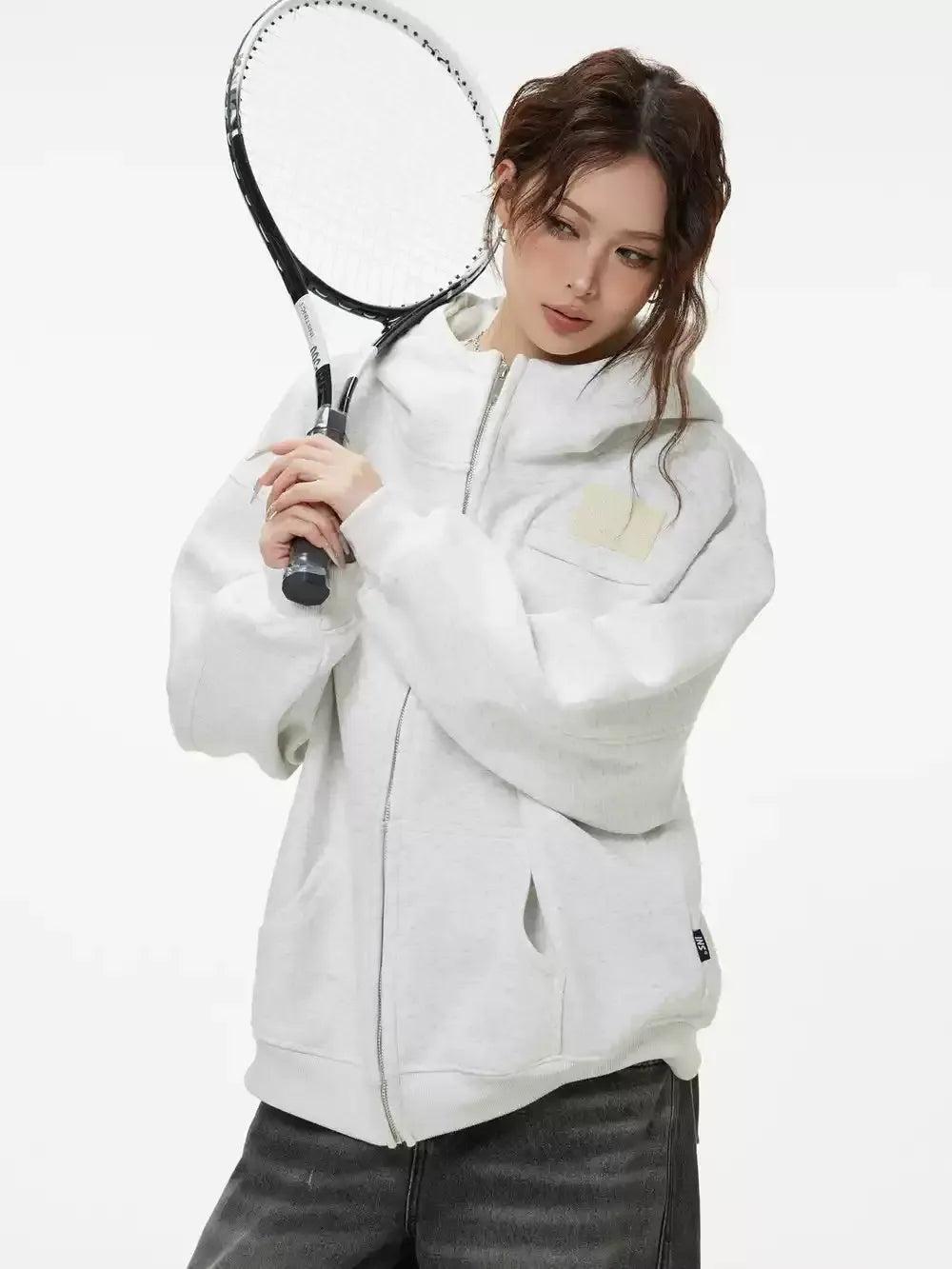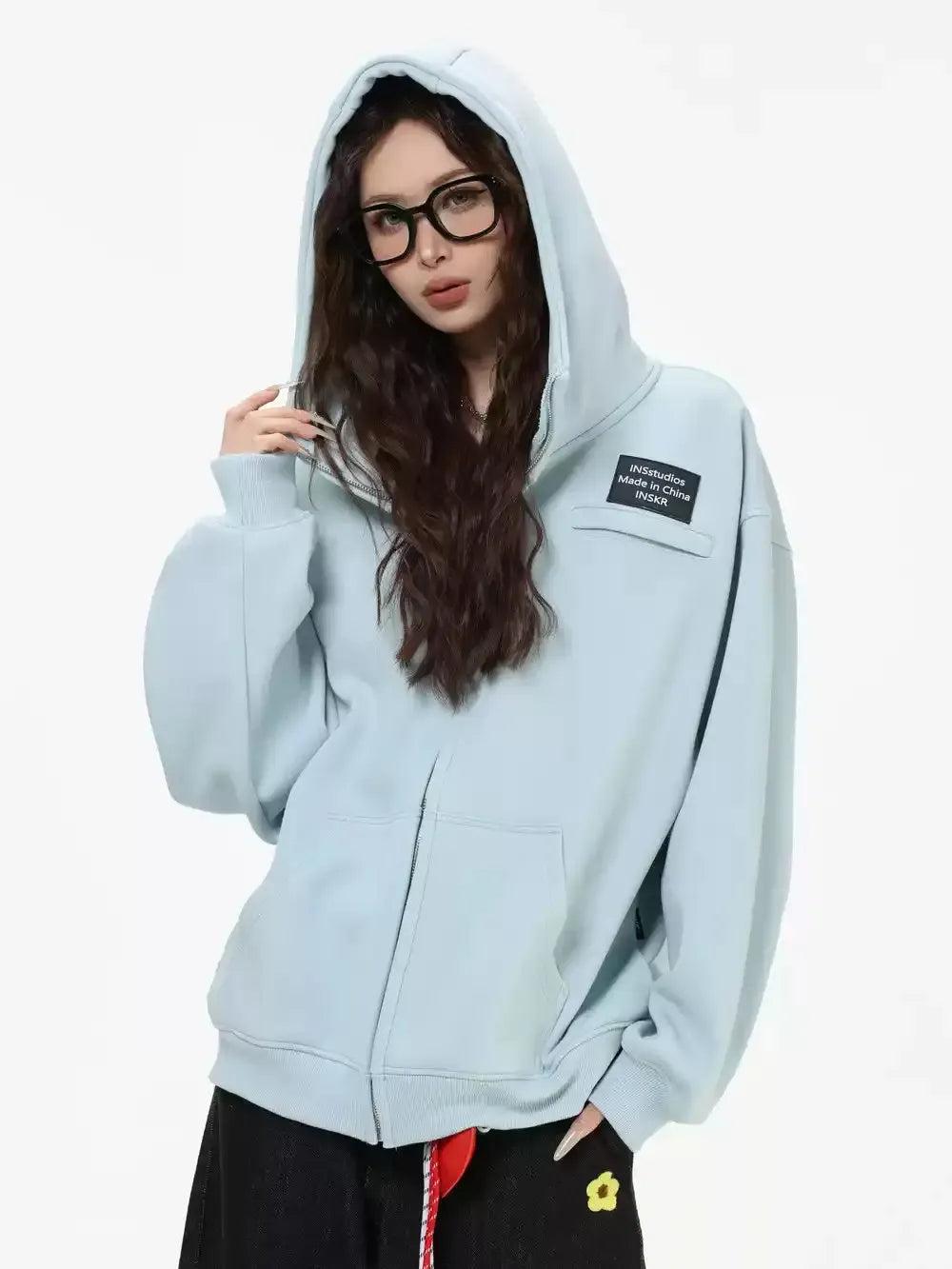 Zip-Up Plain Color Hoodie
