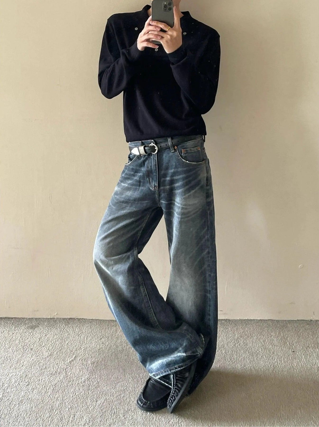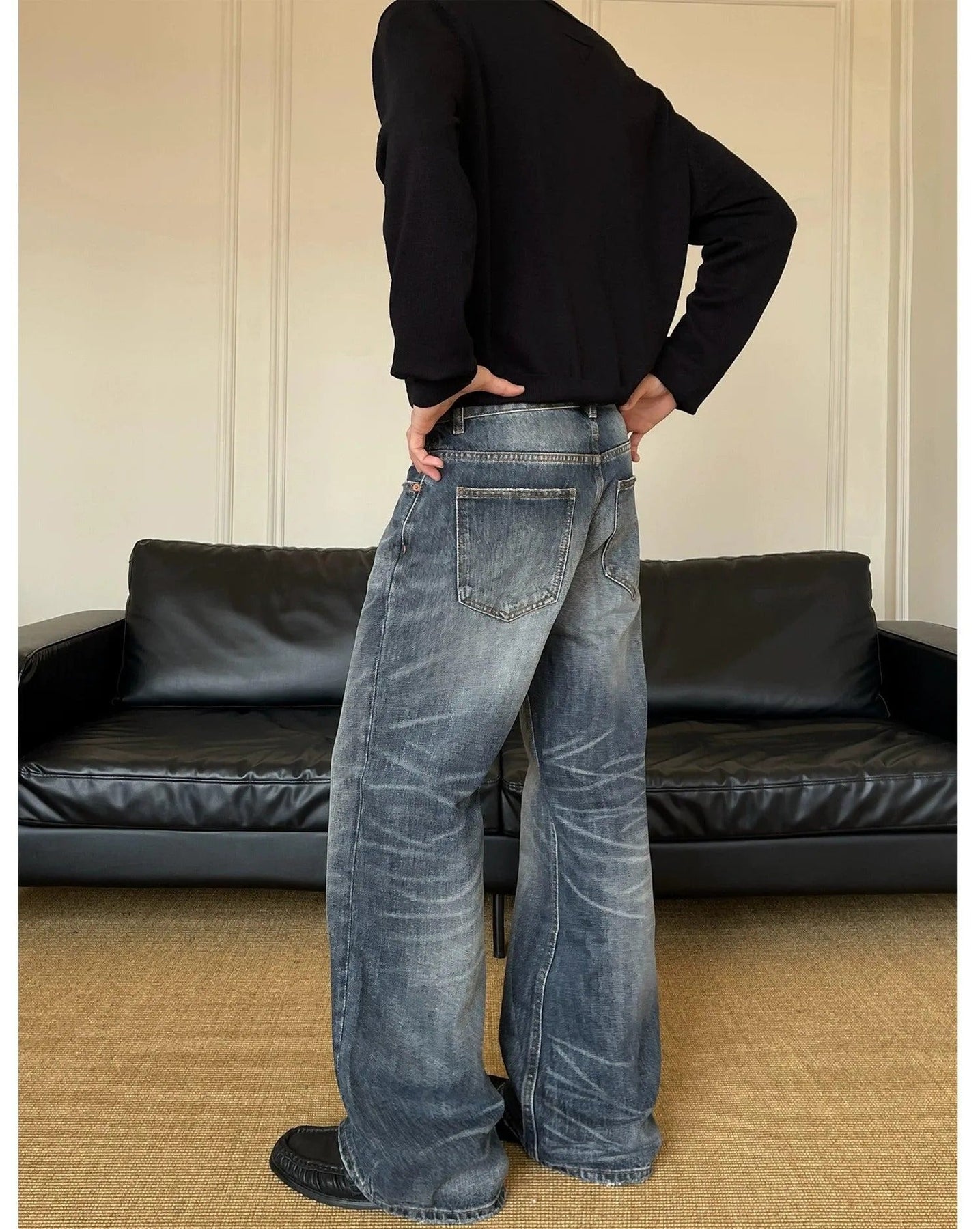 Whiskered Raw Edge Bootcut Jeans