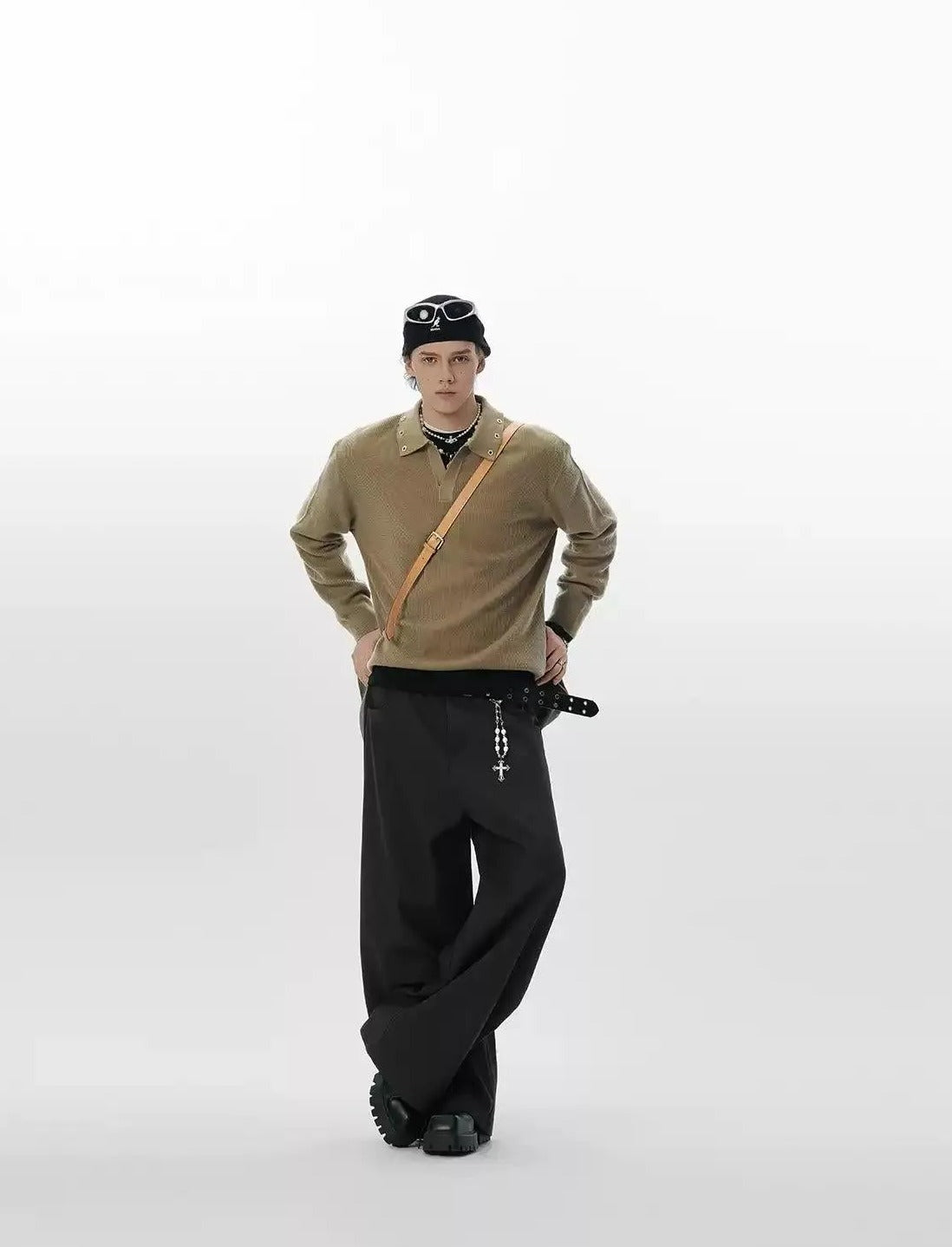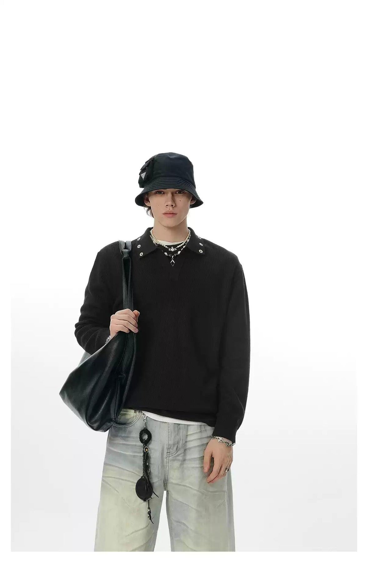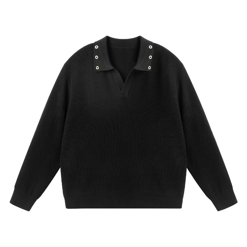 Eyelet Collar V-Neck Long Sleeves Polo