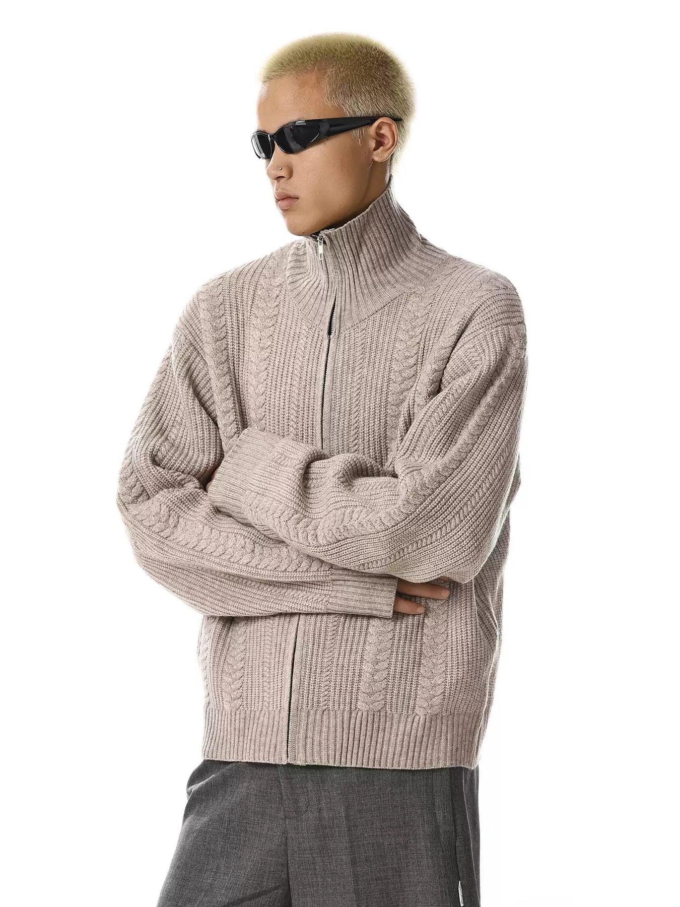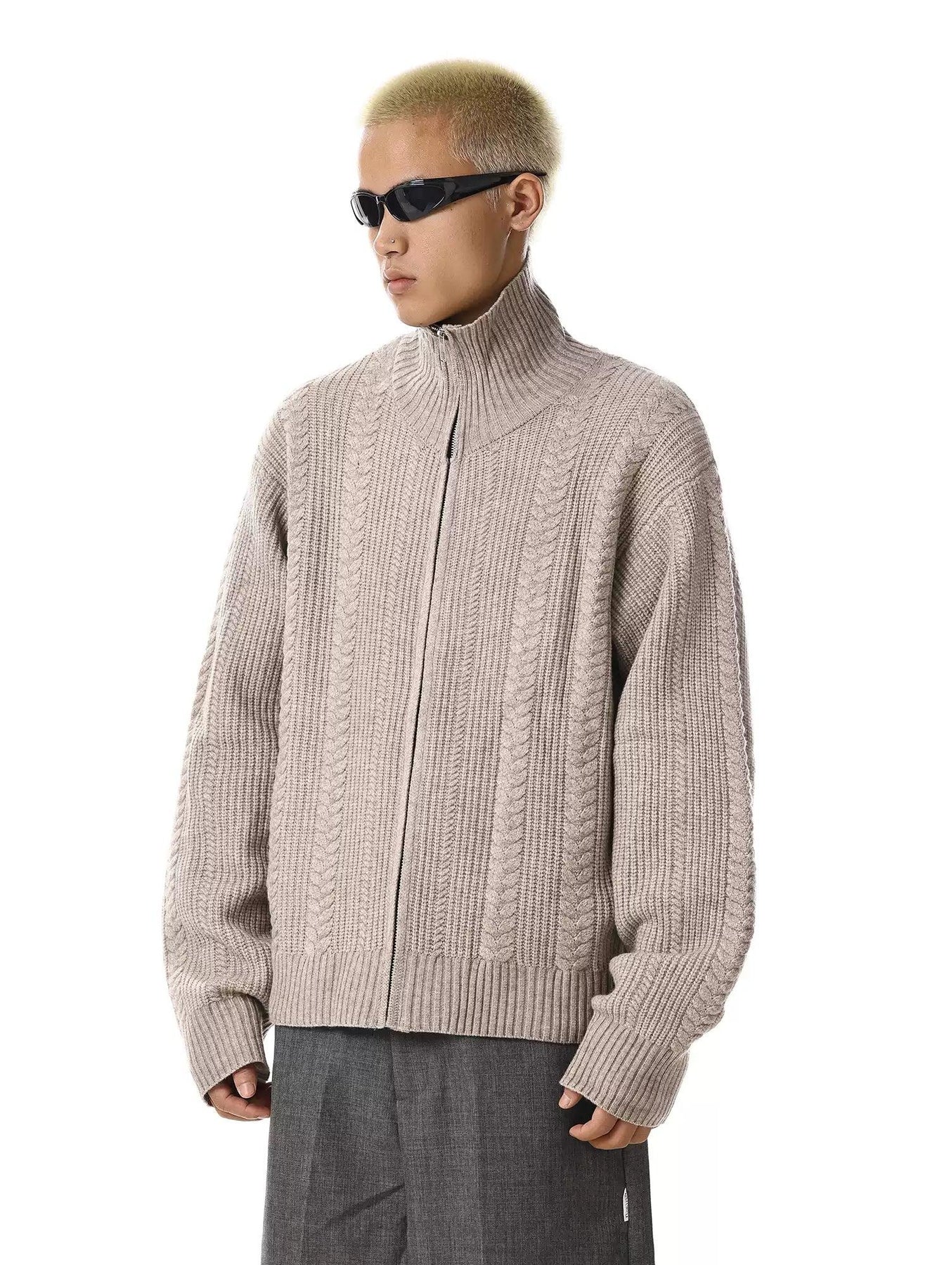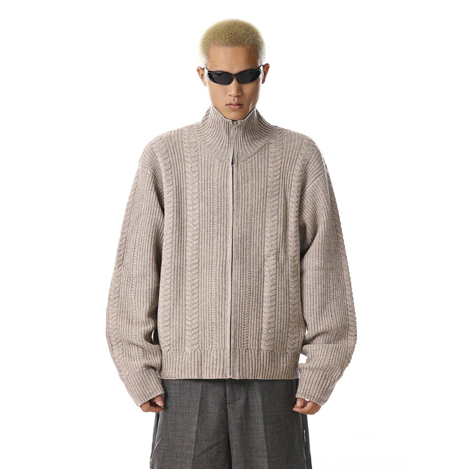 Patterned High Neck Zip-Up Sweater