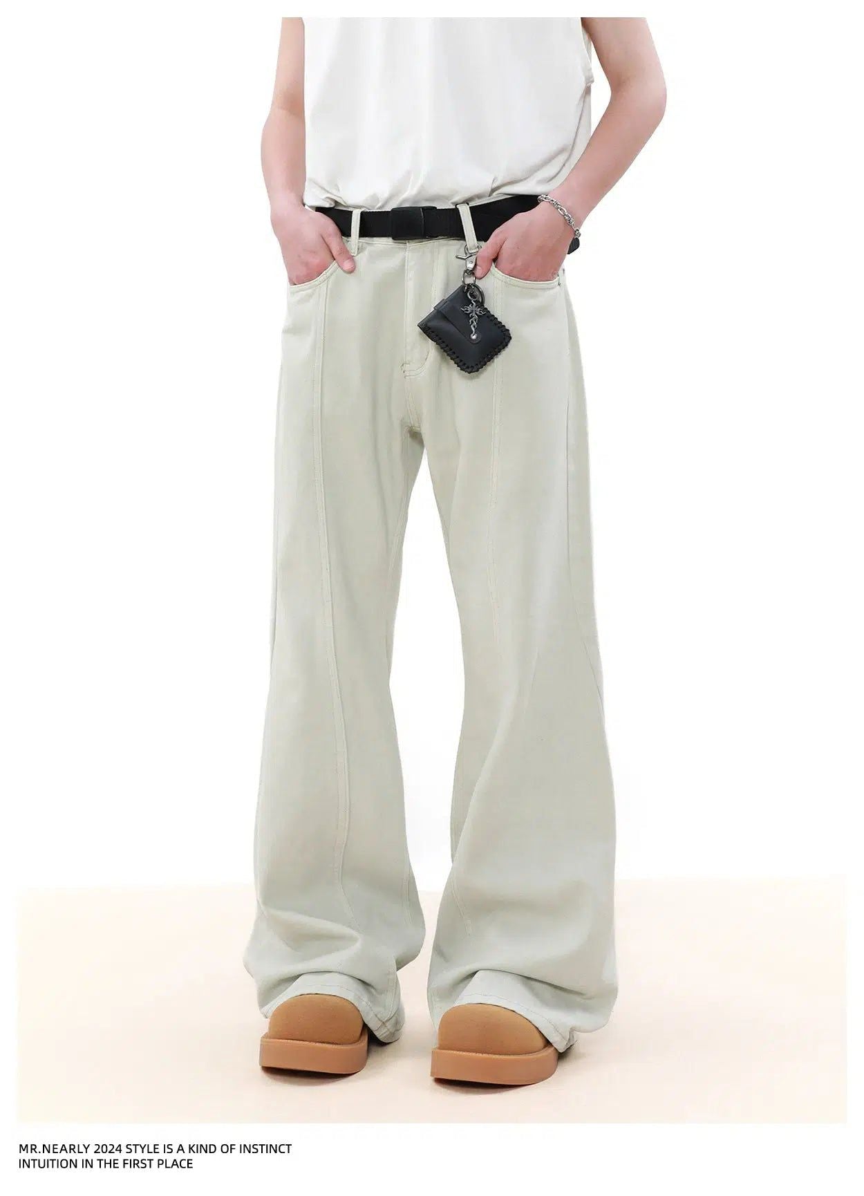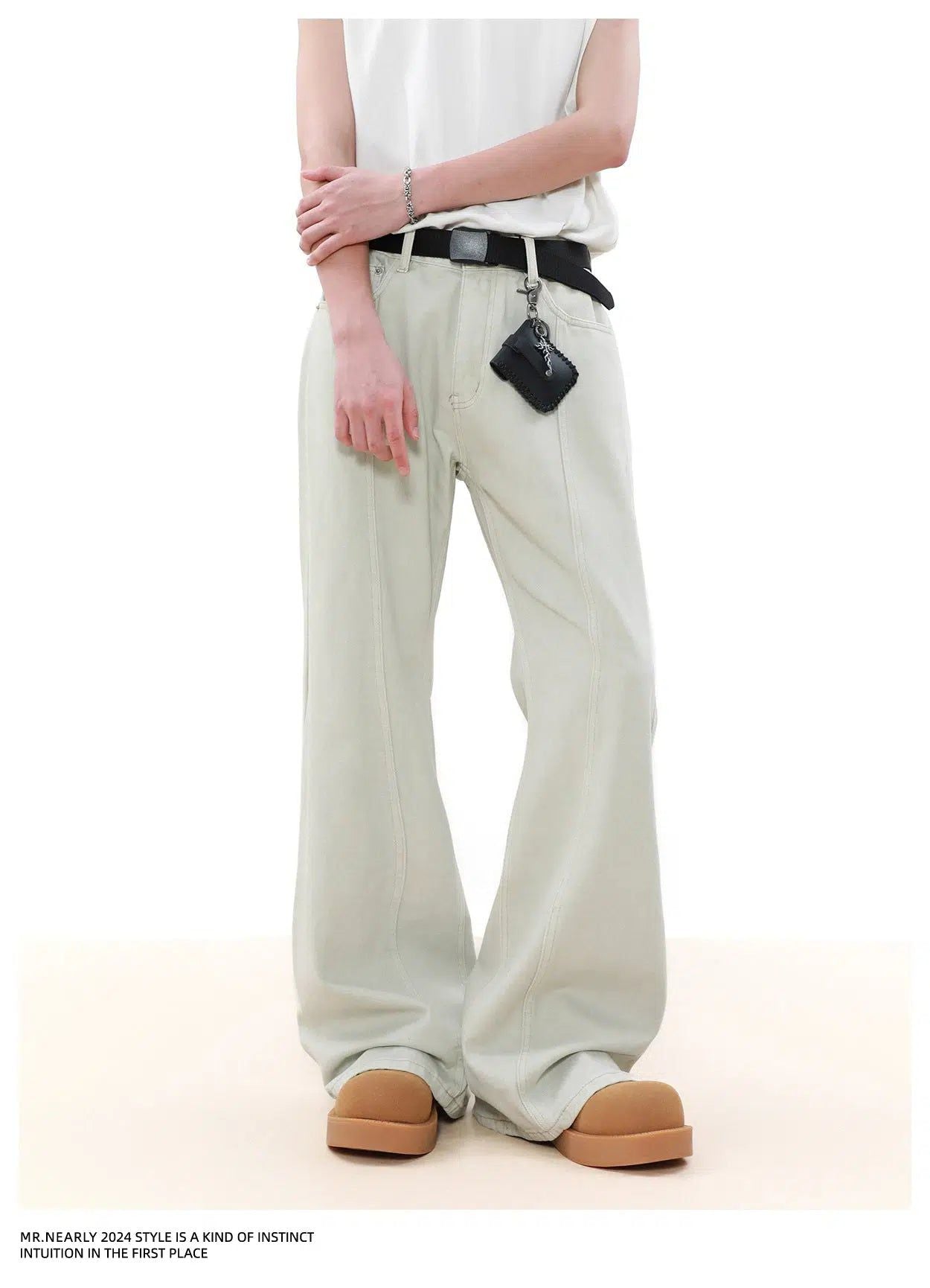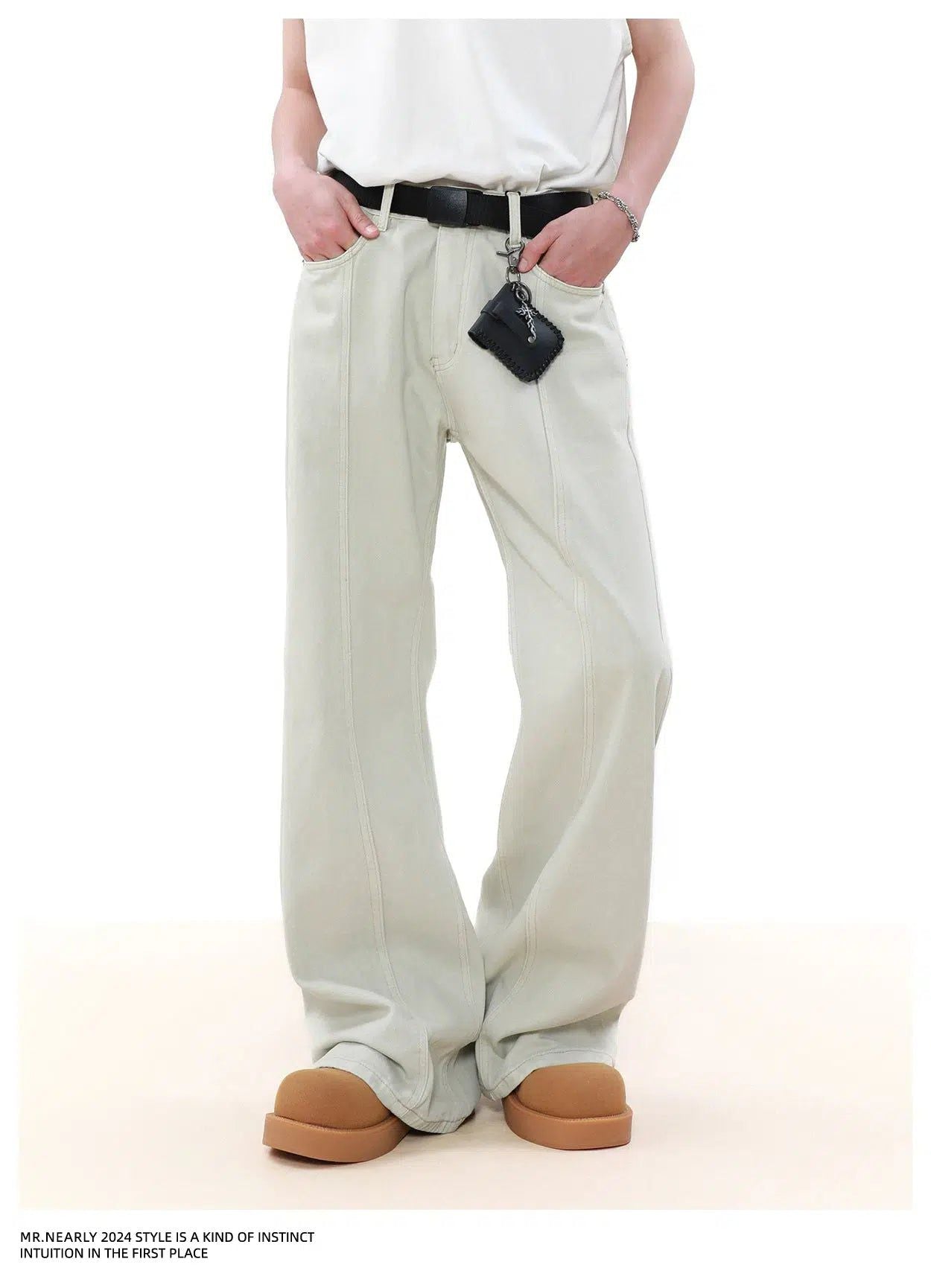 Solid Seam Detail Straight Jeans