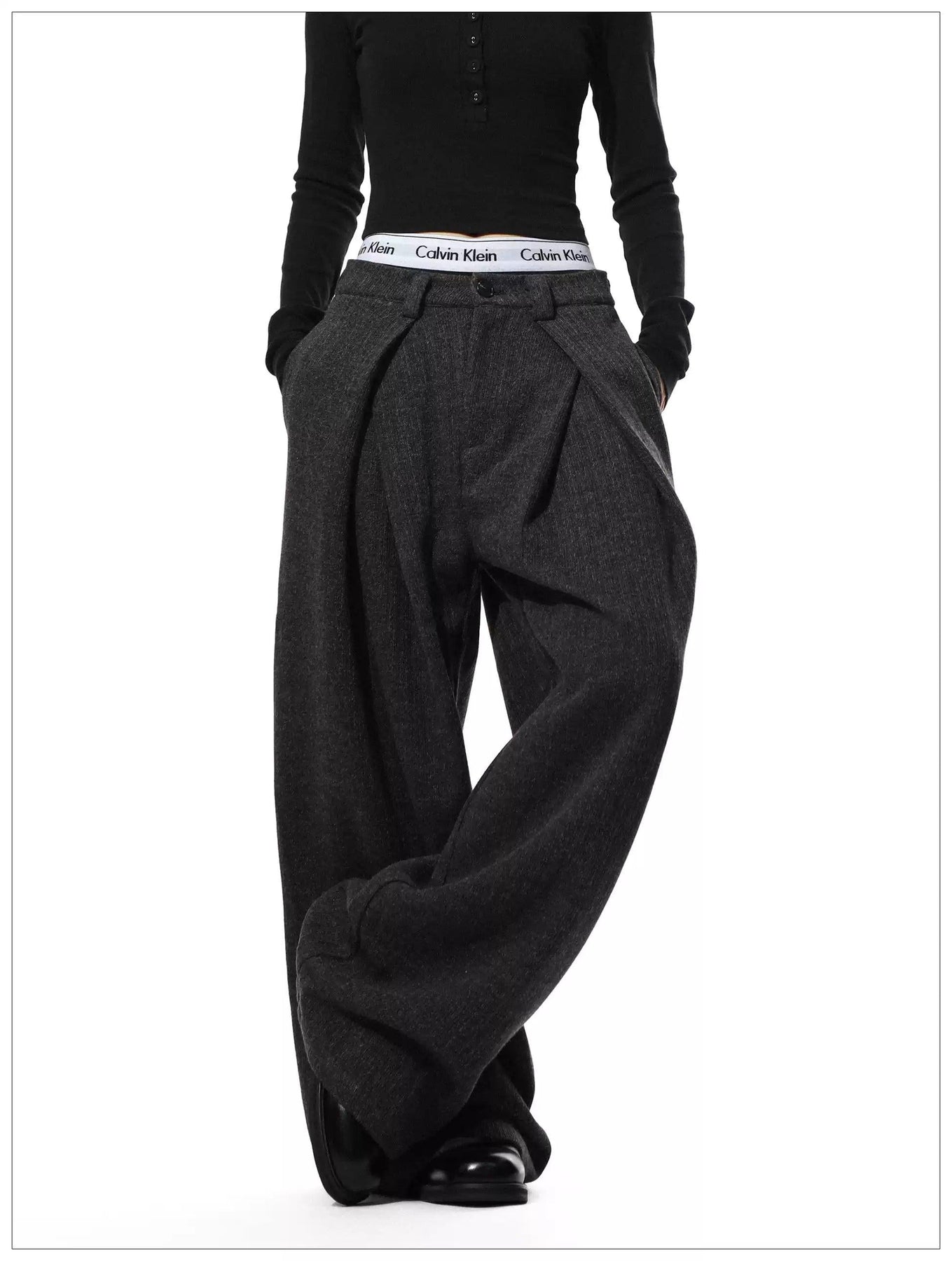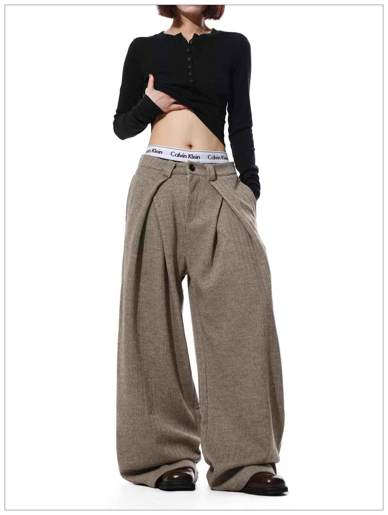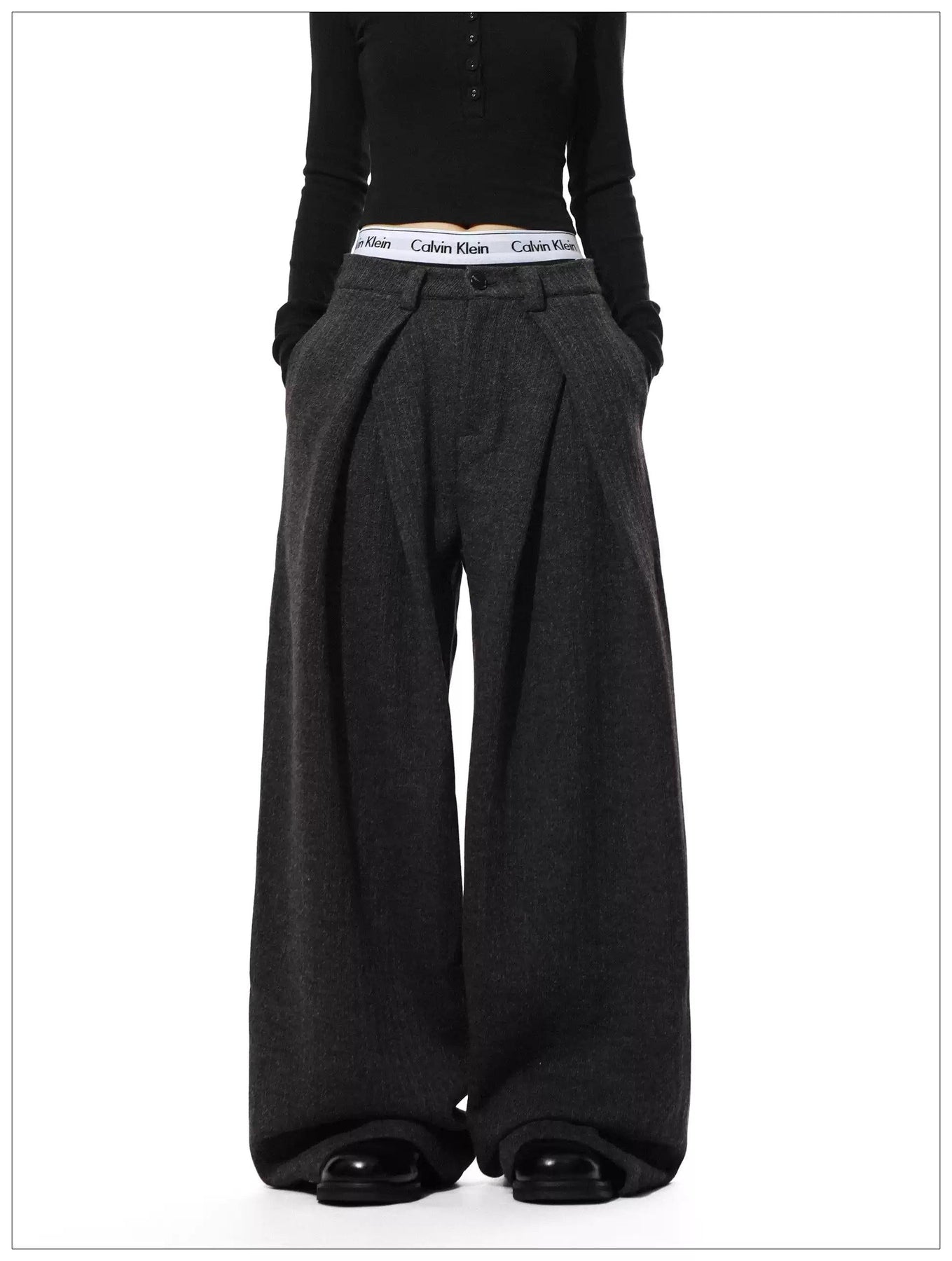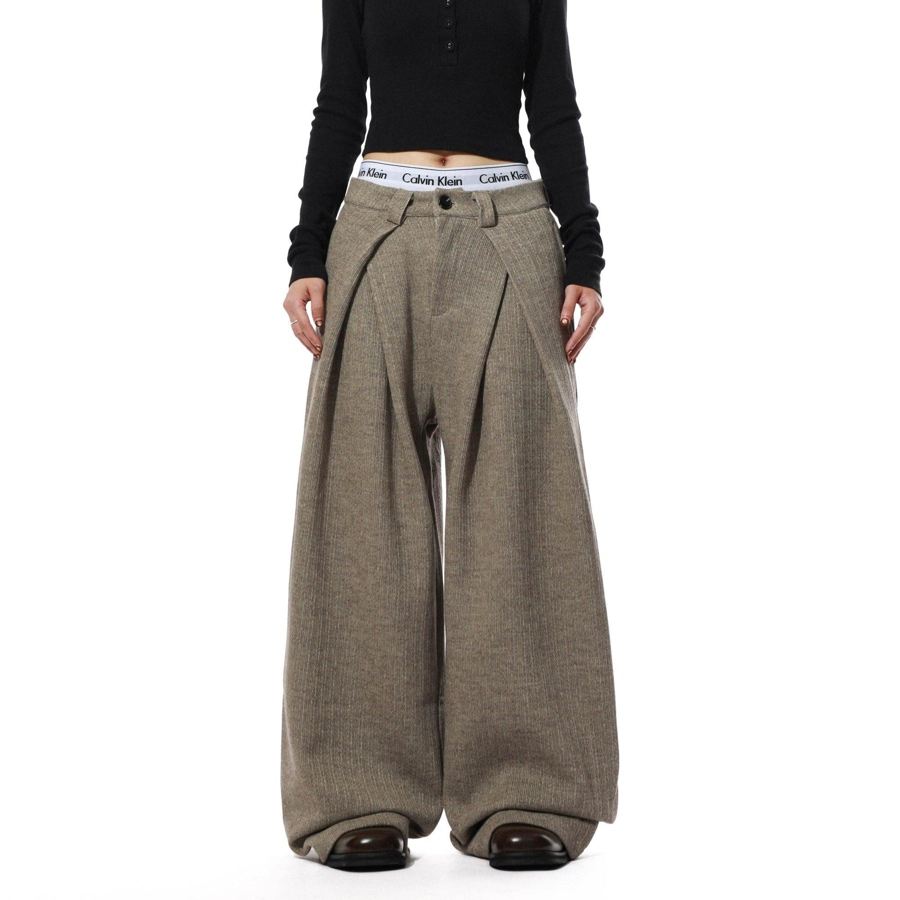 Folded Pleats Textured Trousers