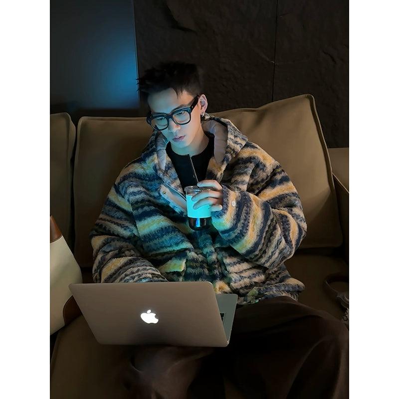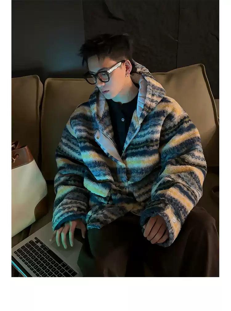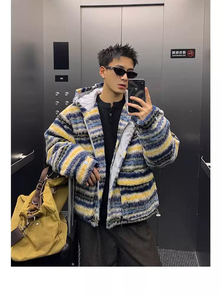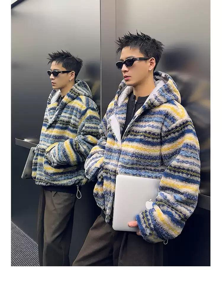 Contrast Striped Hooded Fleece Jacket