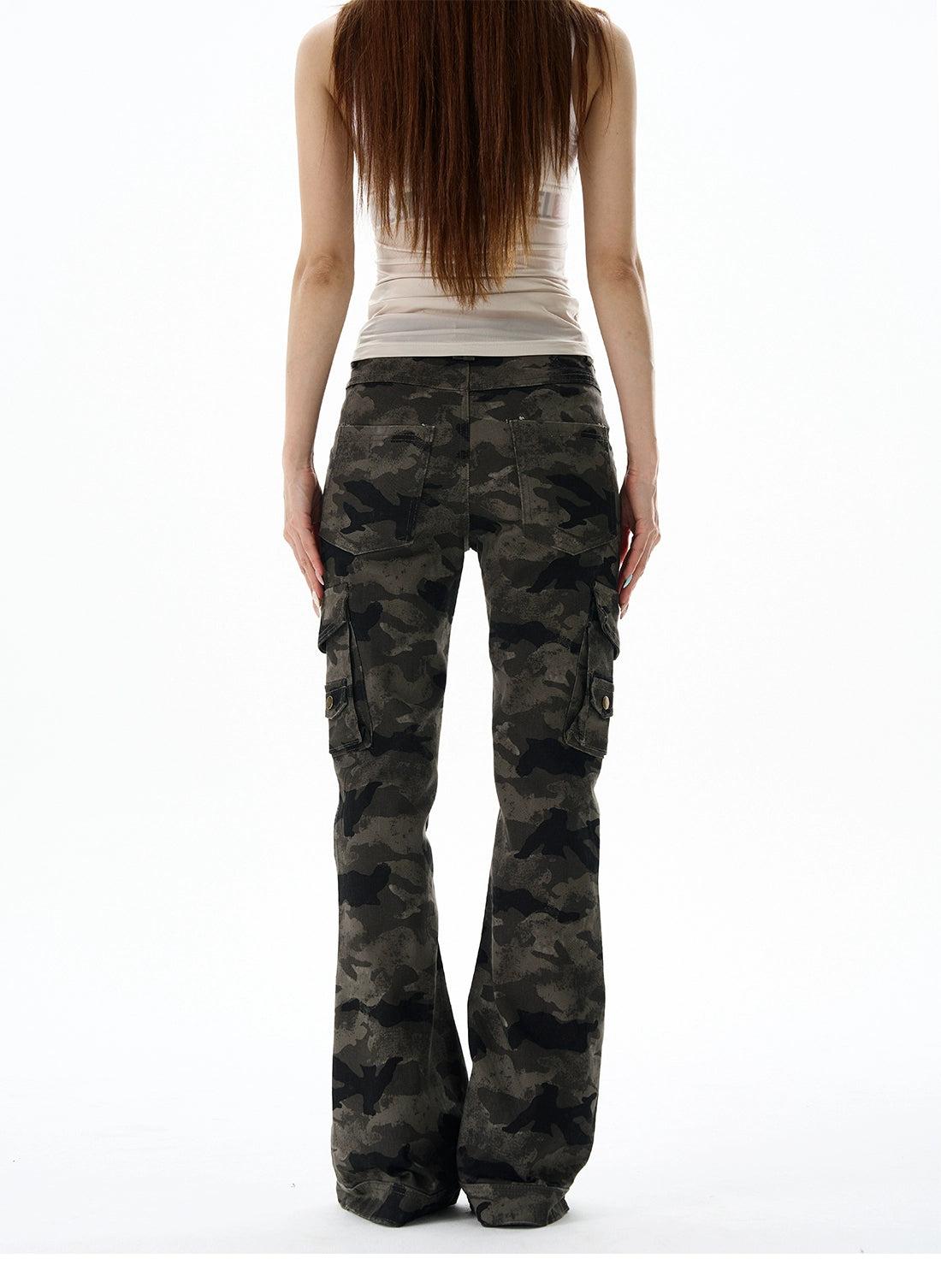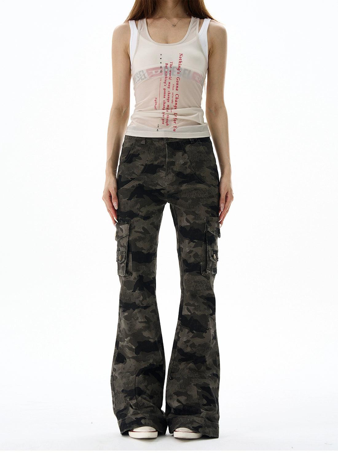 Camouflage Cargo Flared Jeans