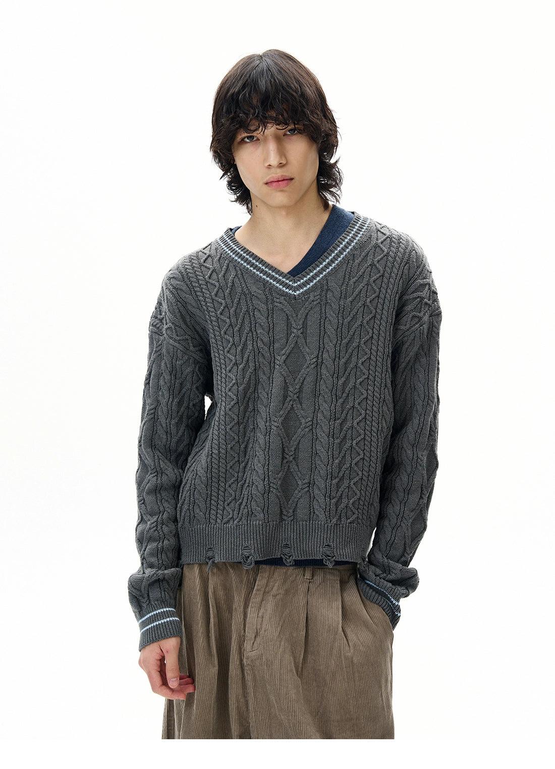 Distressed V-Neck Sweater