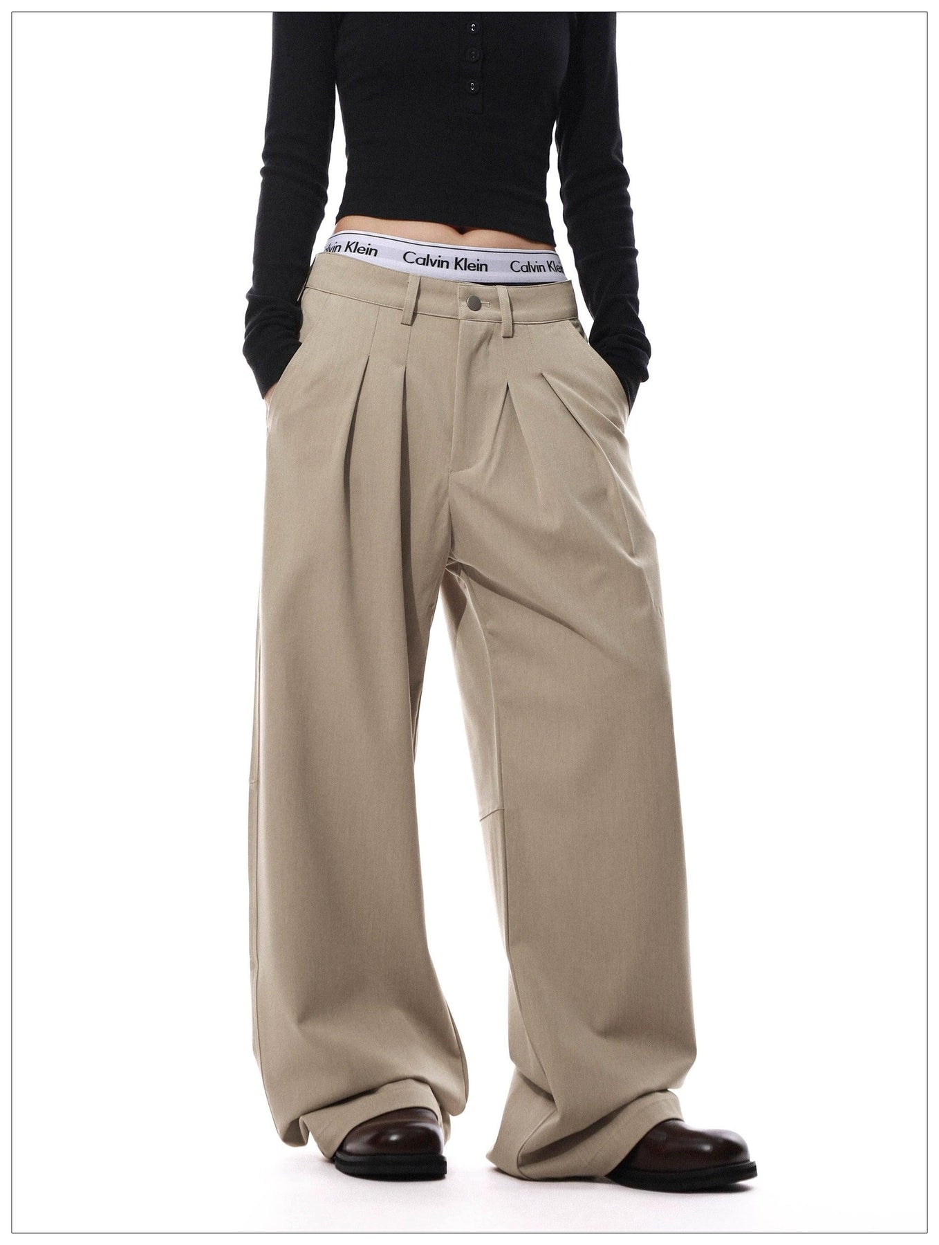 Fold Pleats Slant Pocket Trousers