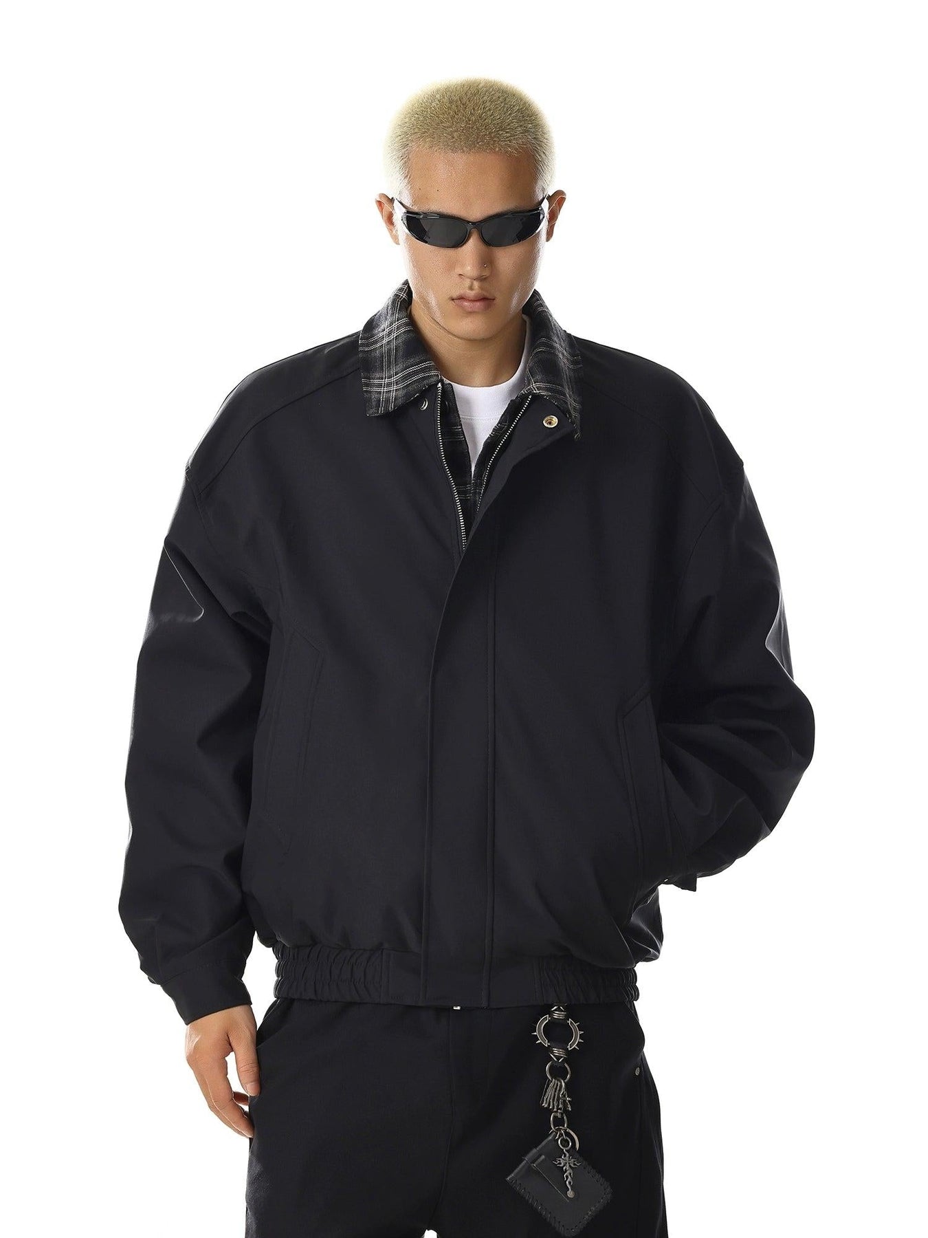 Plaid Spliced Bomber Jacket