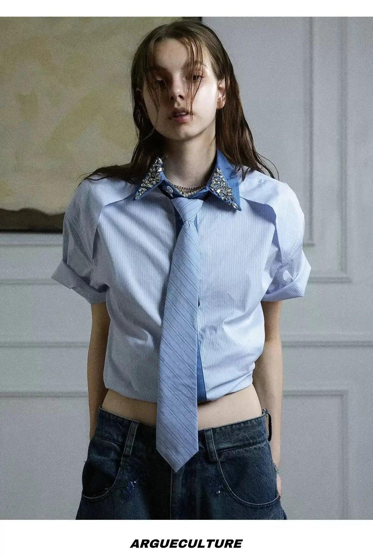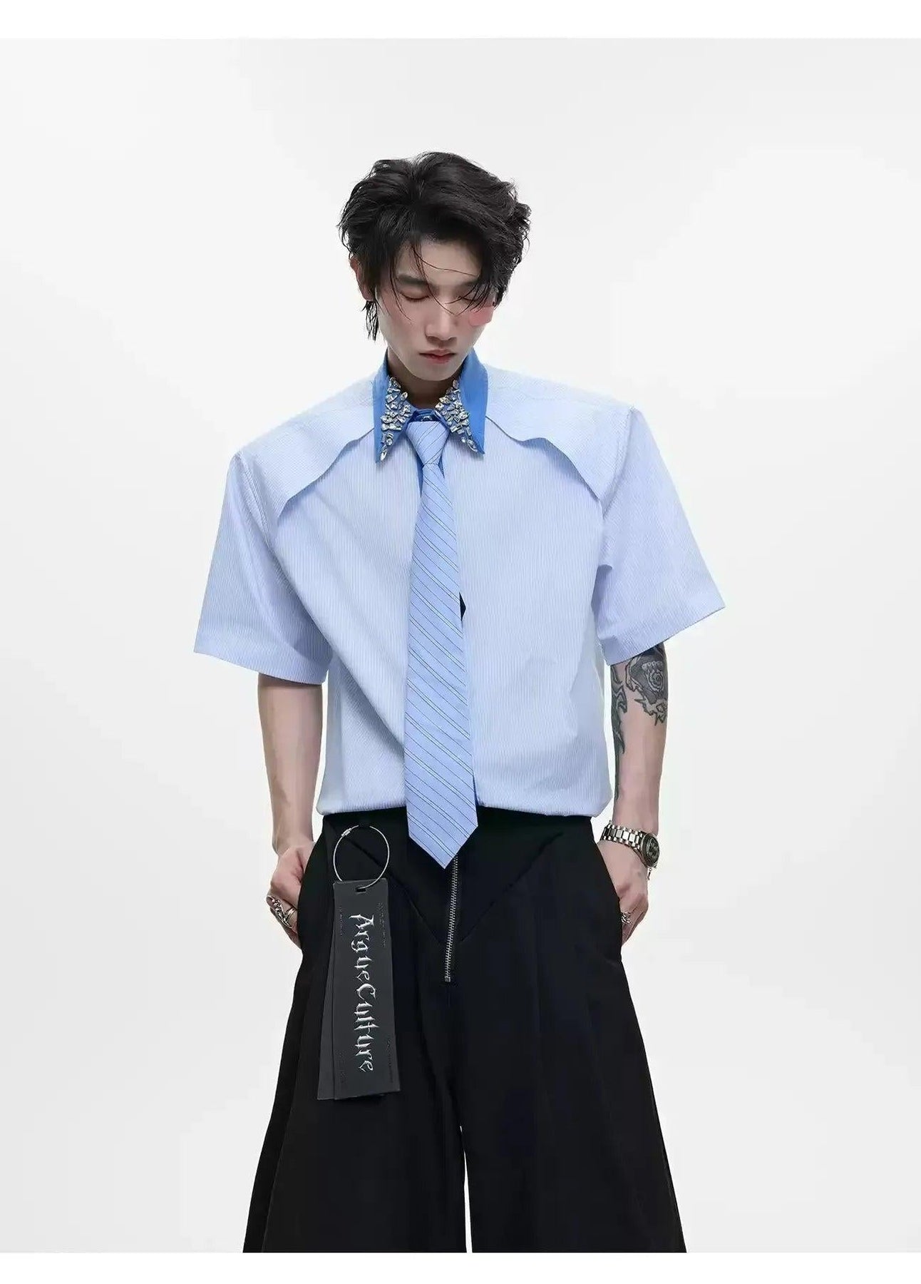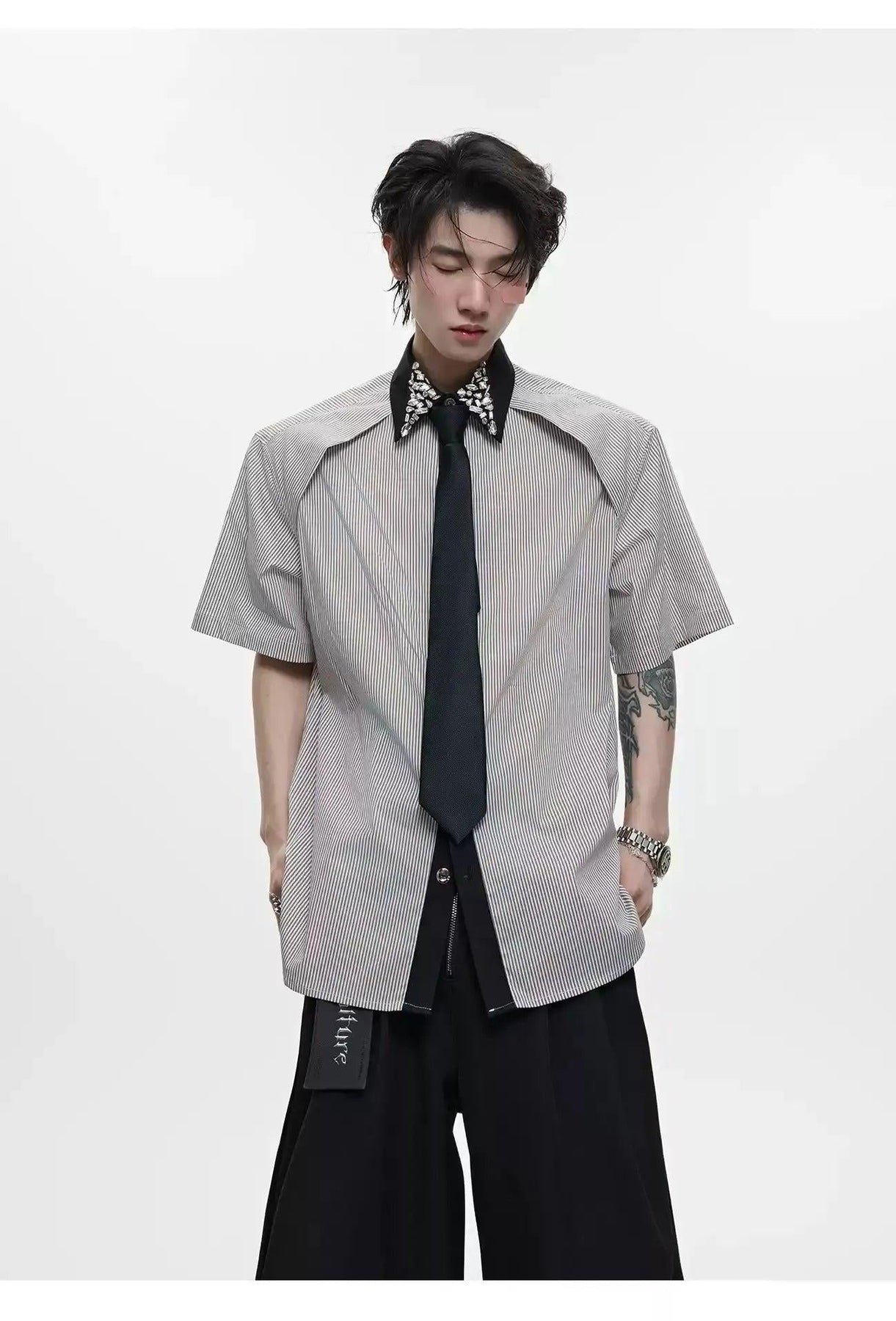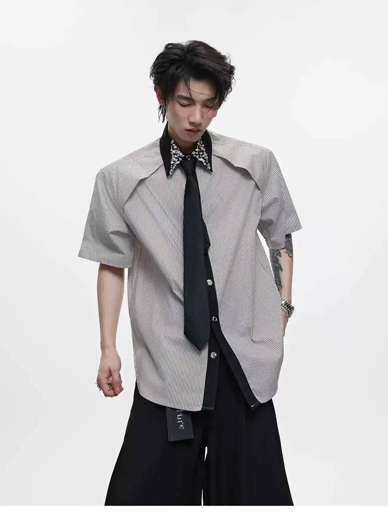 Diamond Striped With Tie Shirt