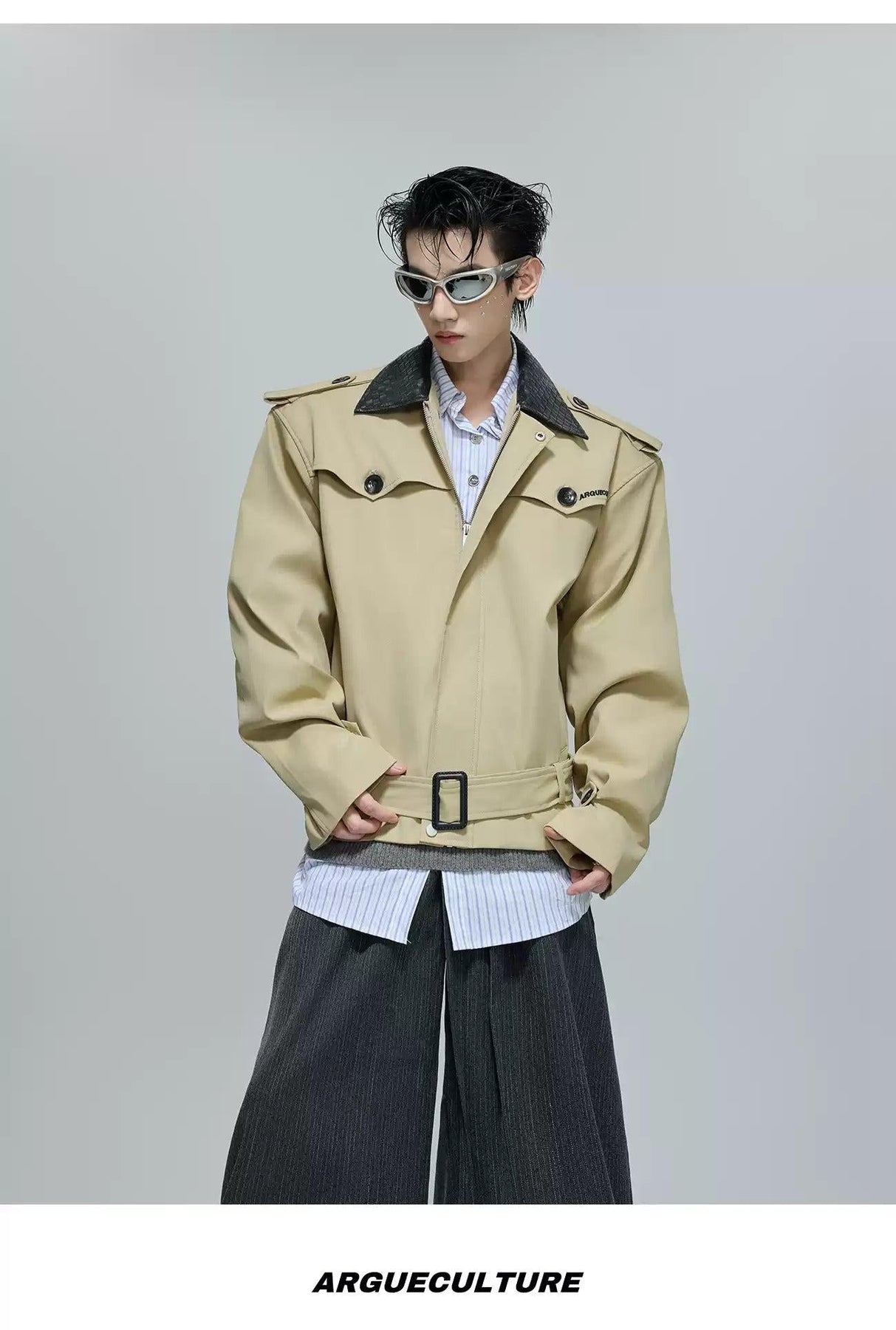 Faux Leather Collar Strap Belt Jacket