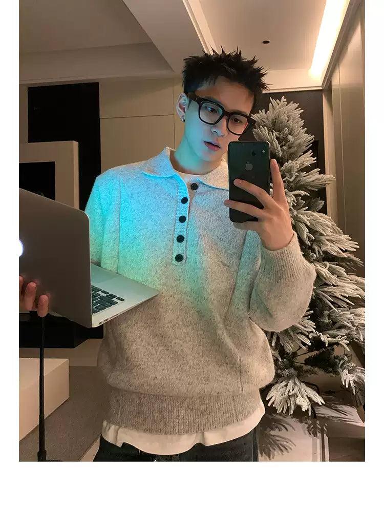 Half-Buttoned Polo Sweater
