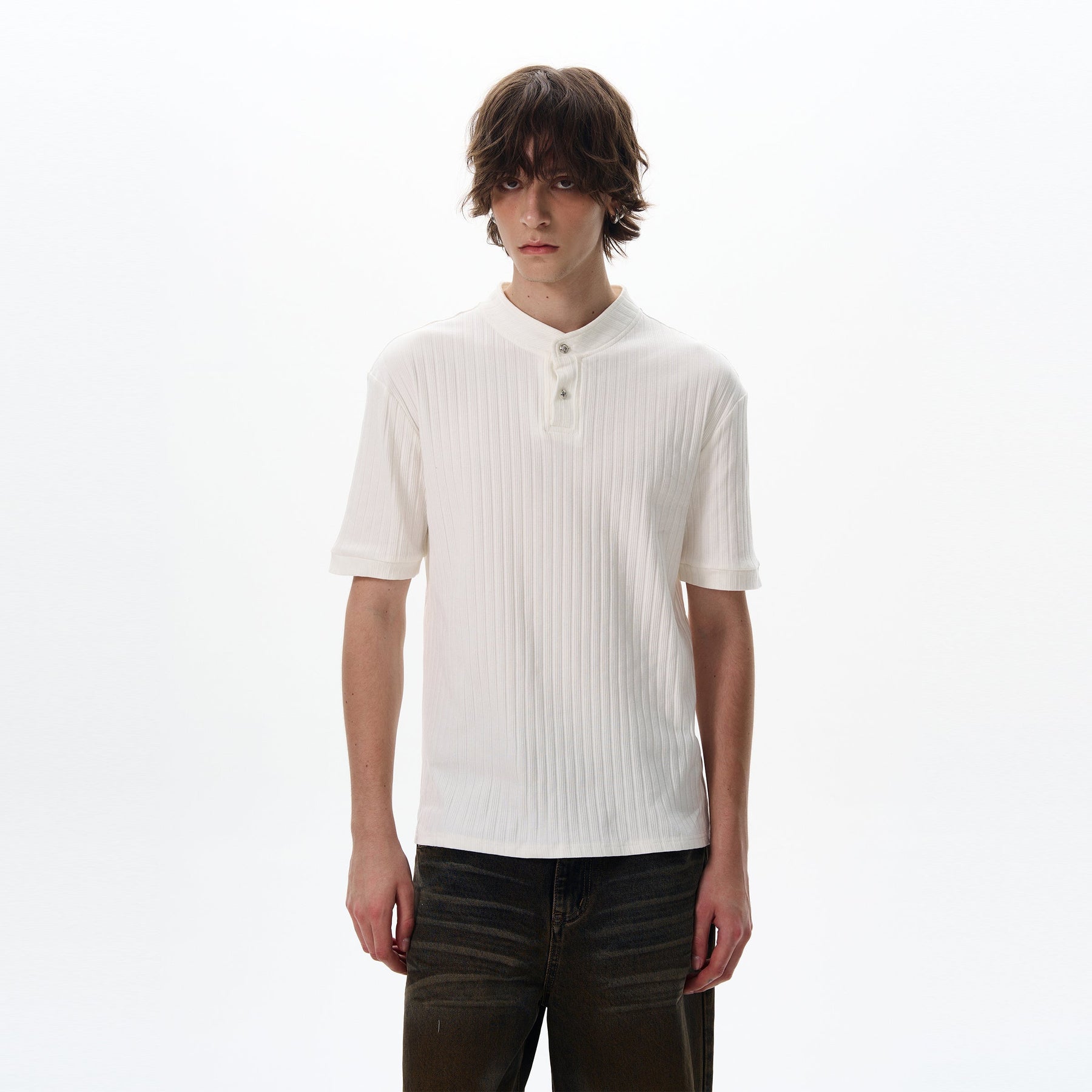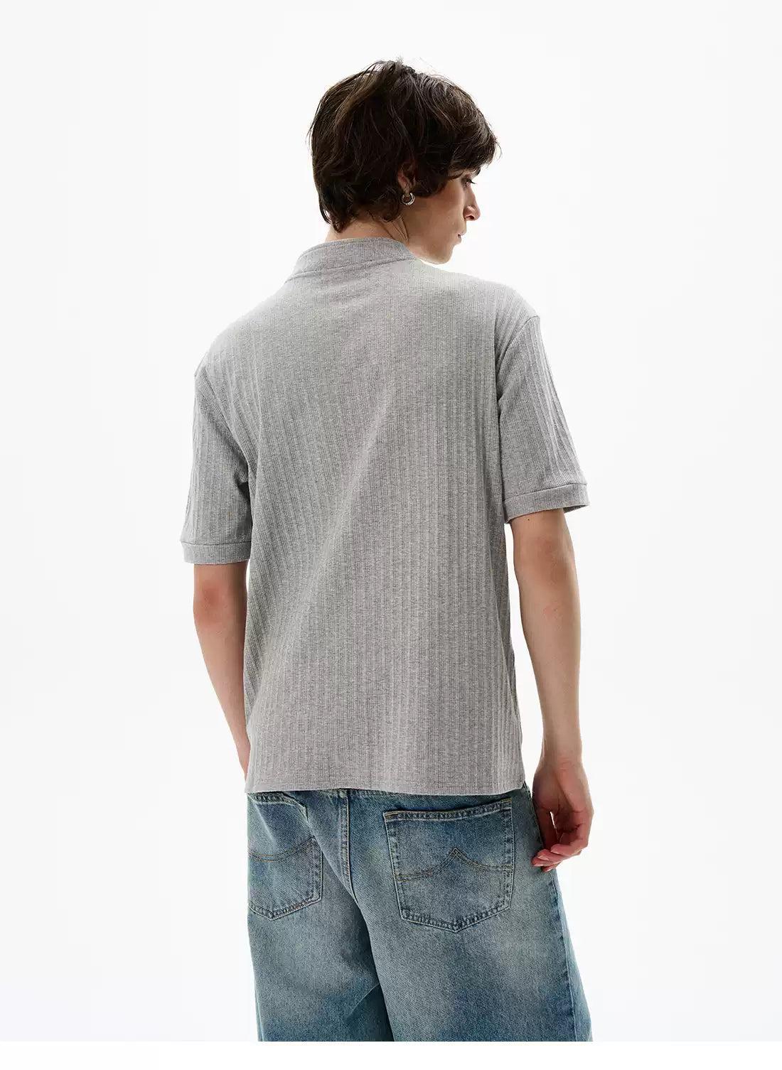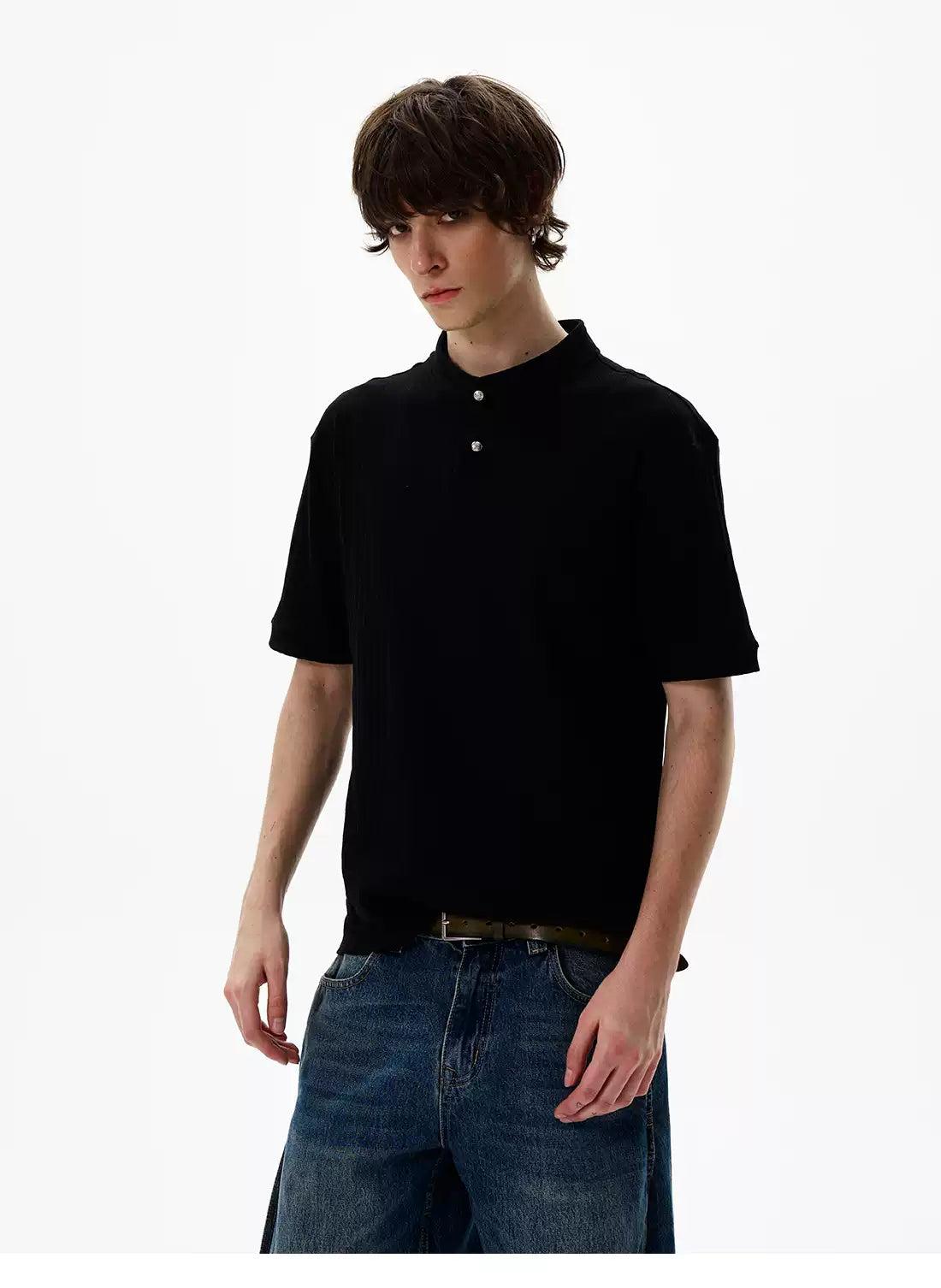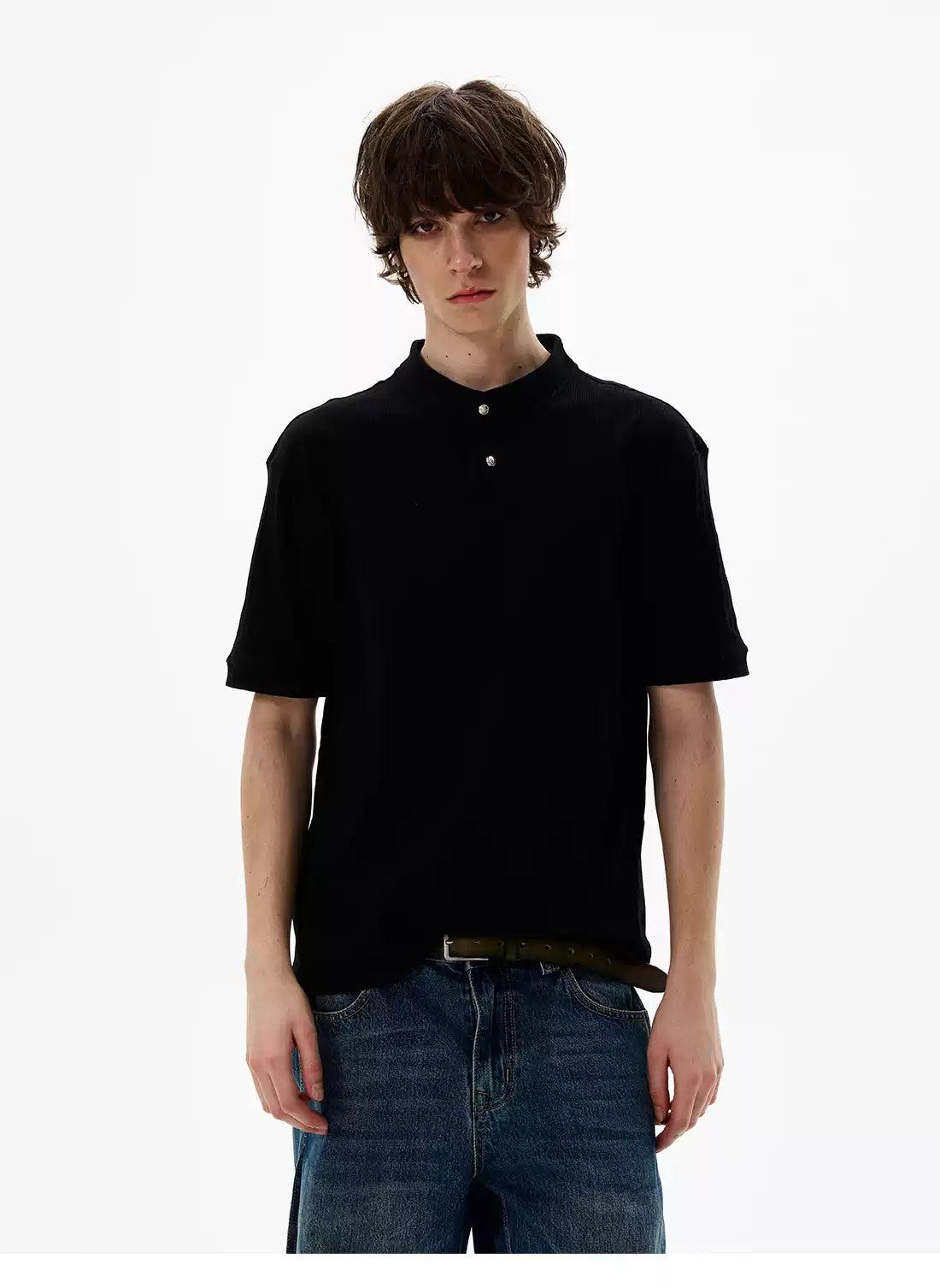 Two-Buttons Textured T-Shirt