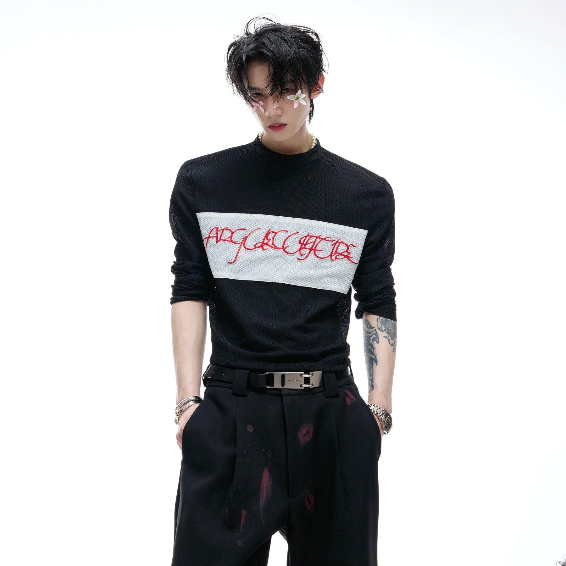 Embroidered Logo Mesh L/S T-Shirt